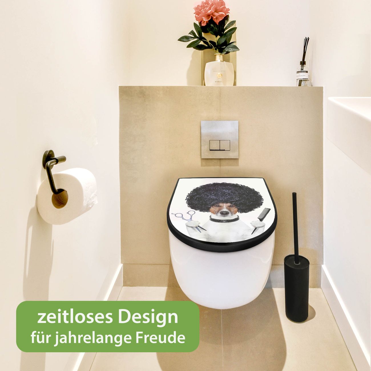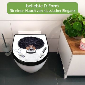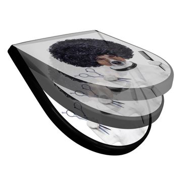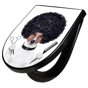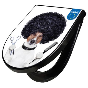 WC Sitz D-Form Schwarz mit Absenkautomatik Motiv Friseur Jack Russel