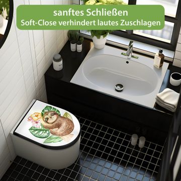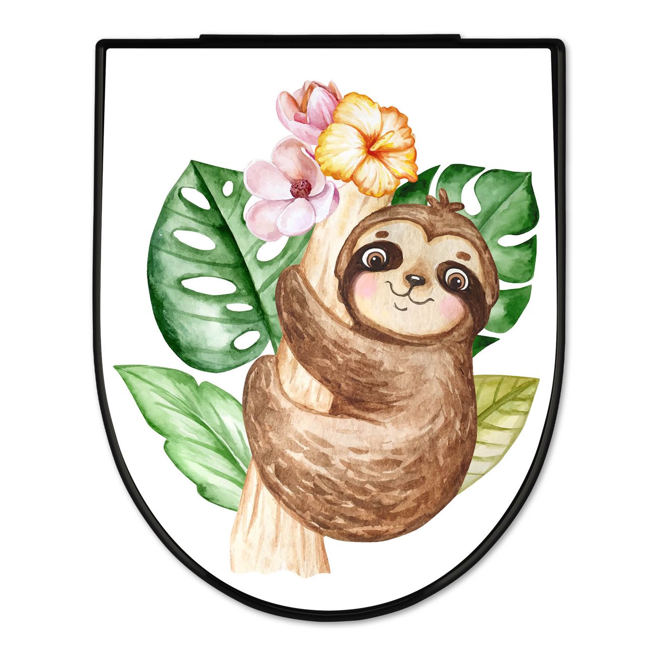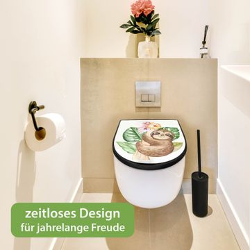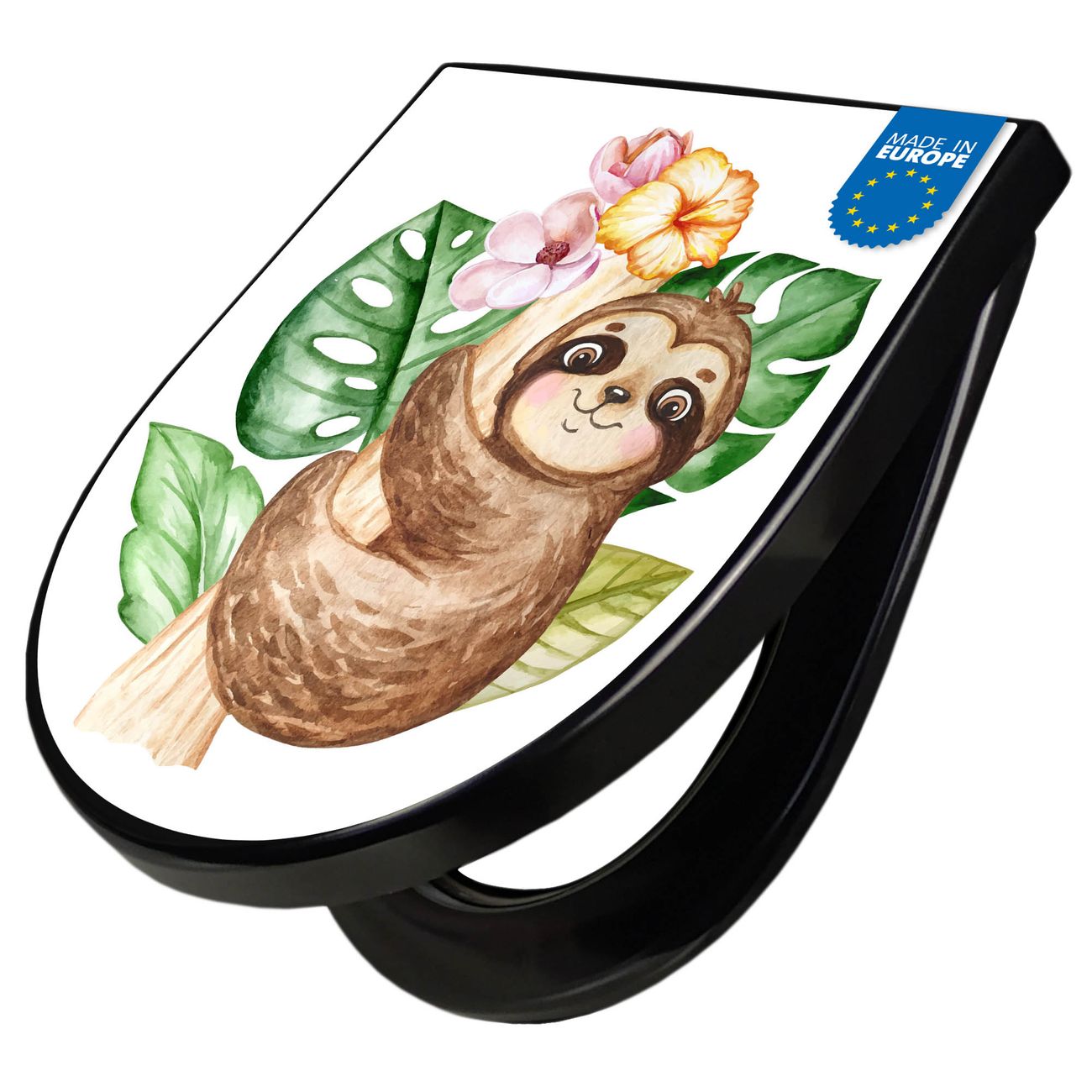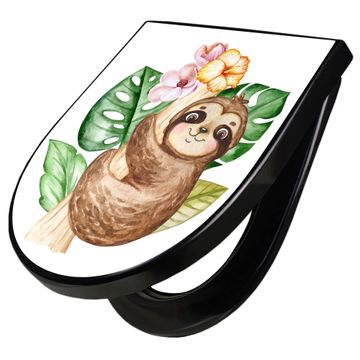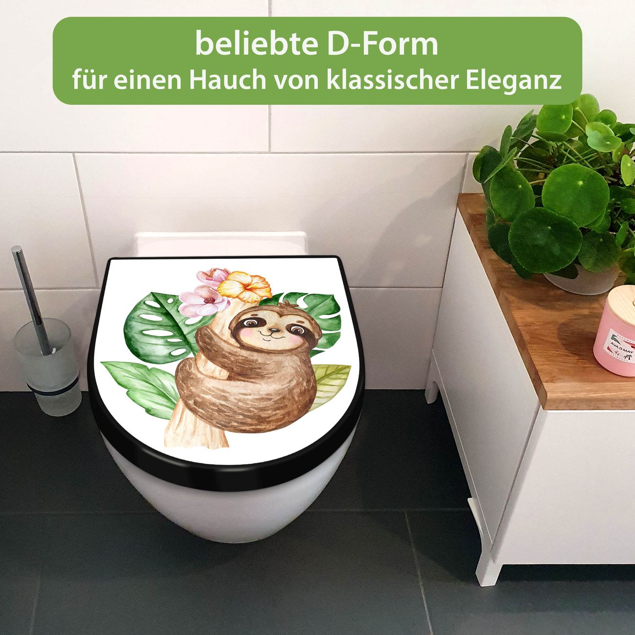 WC Sitz D-Form Schwarz mit Absenkautomatik Motiv Fröhliches Faultier