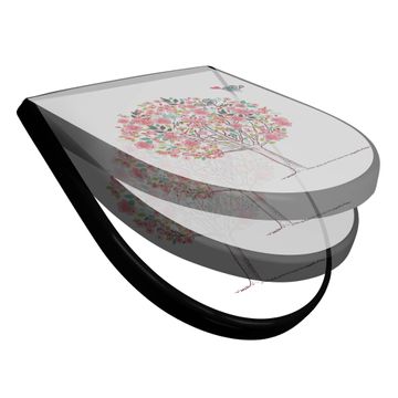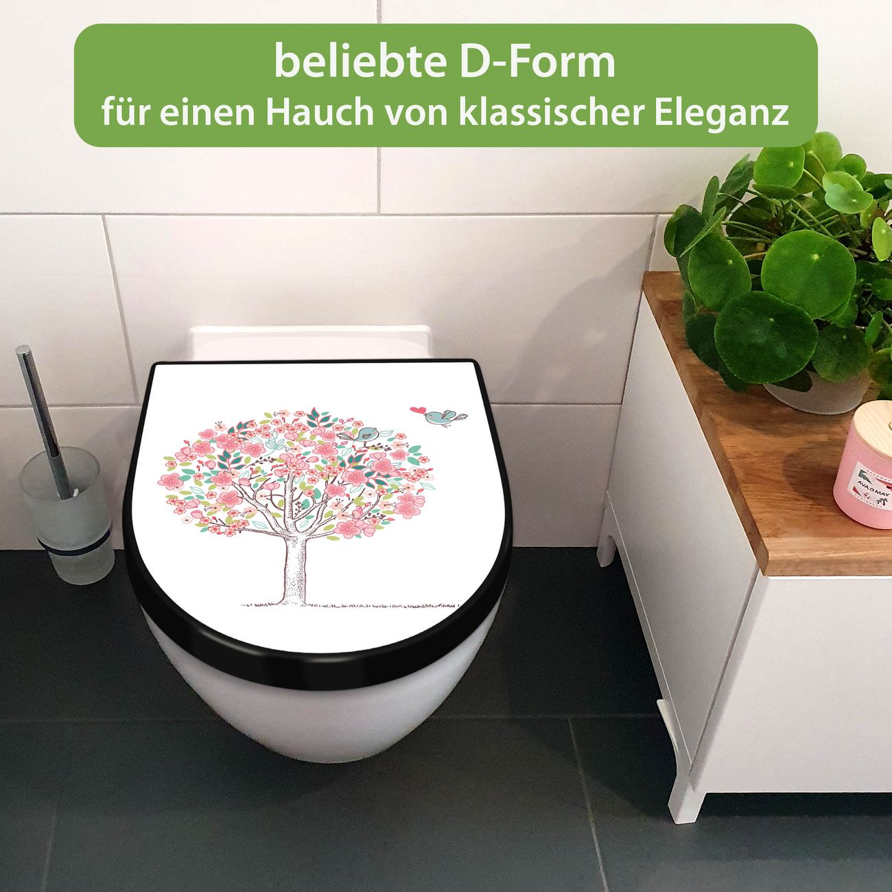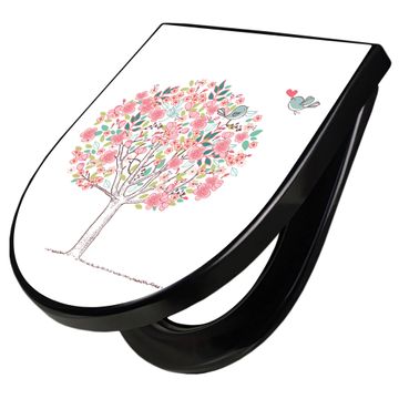 WC Sitz D-Form Schwarz mit Absenkautomatik Motiv Frühlingsgefühle