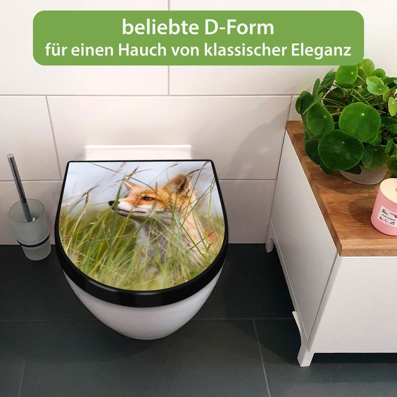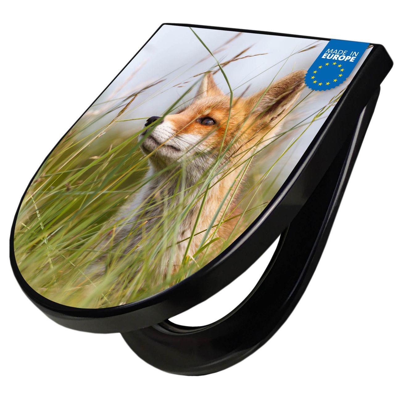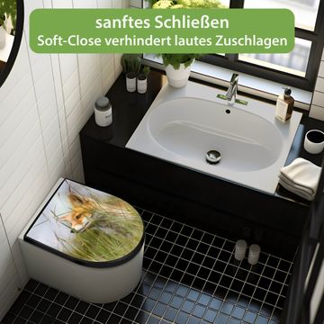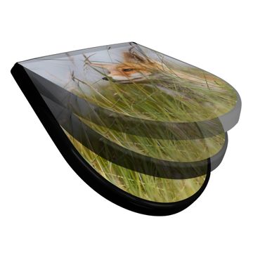 WC Sitz D-Form Schwarz mit Absenkautomatik Motiv Fuchs