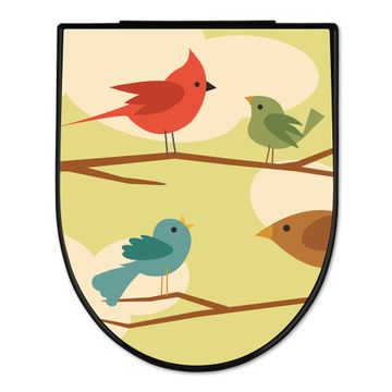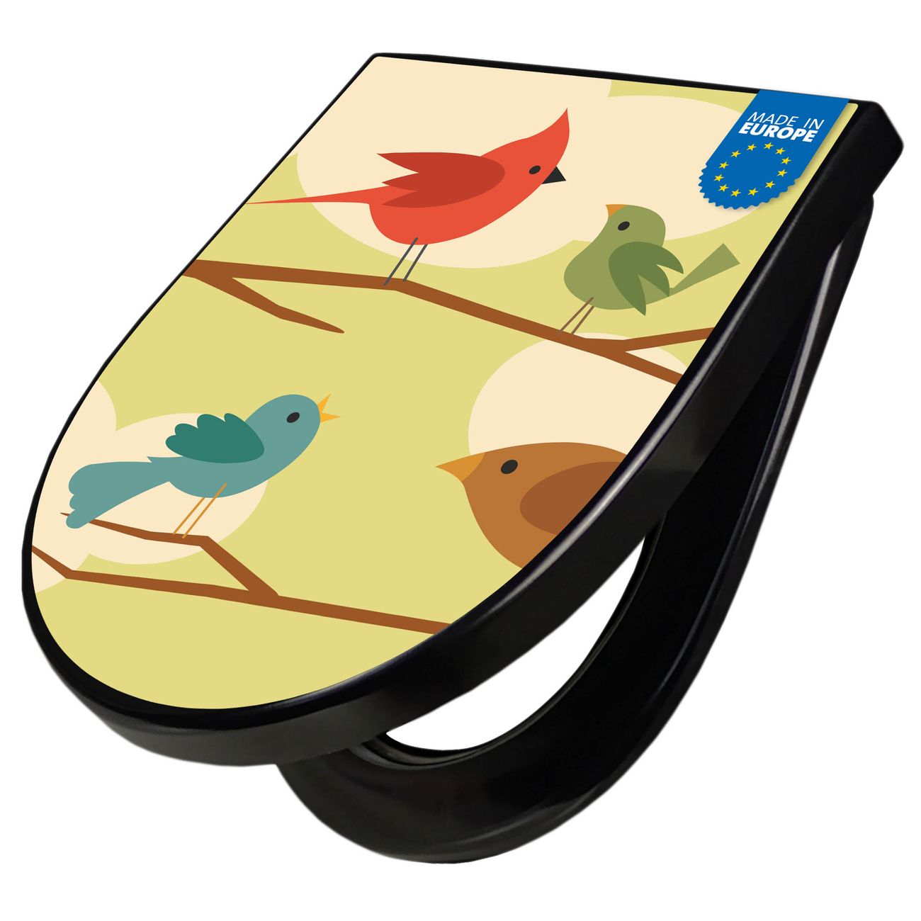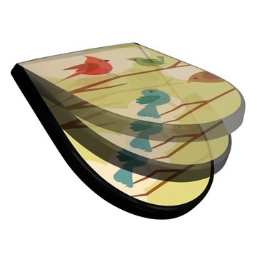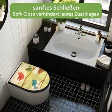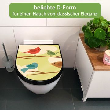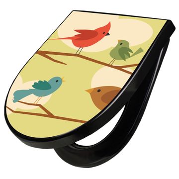 WC Sitz D-Form Schwarz mit Absenkautomatik Motiv Fünf Vögel