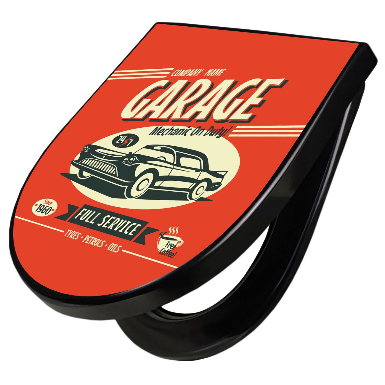 WC Sitz D-Form Schwarz mit Absenkautomatik Motiv Full Service