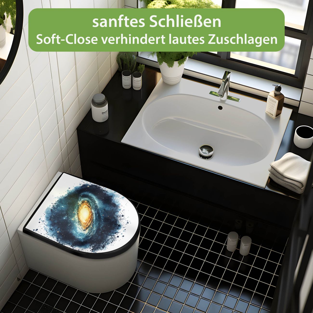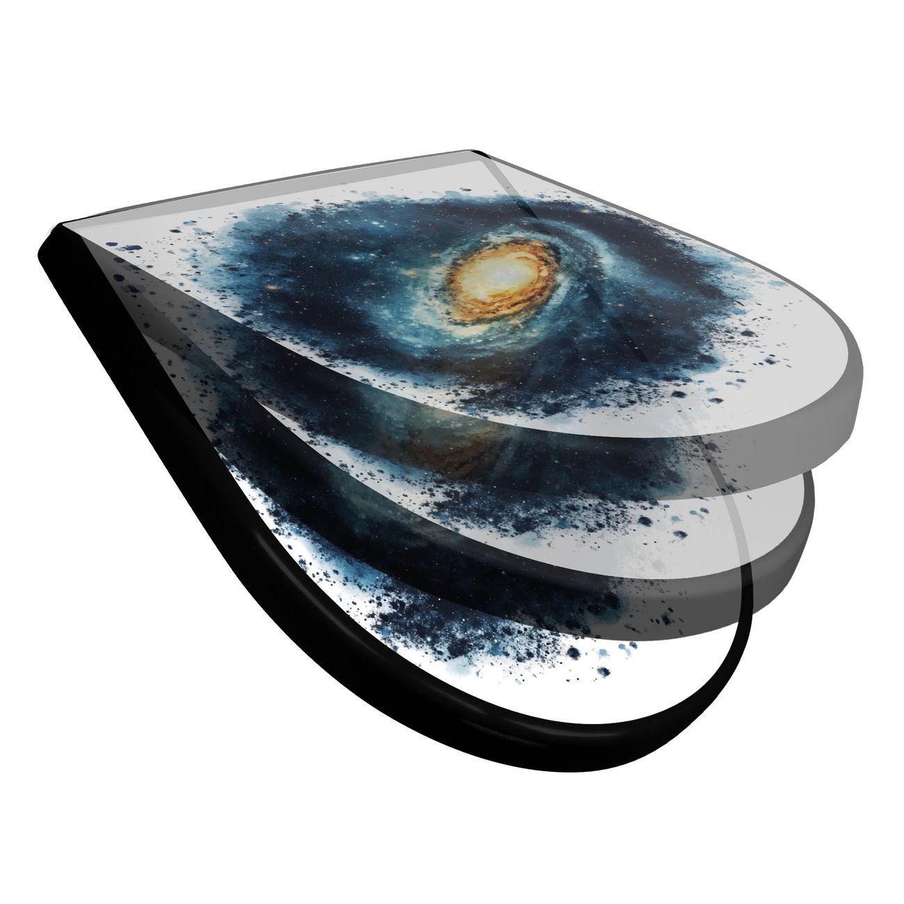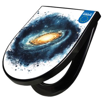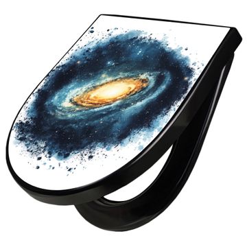 WC Sitz D-Form Schwarz mit Absenkautomatik Motiv Galaktische Explosion