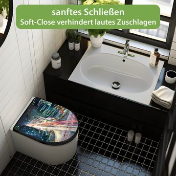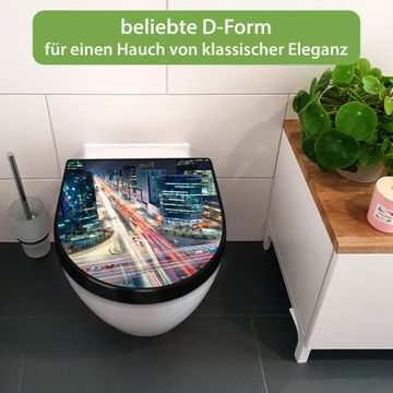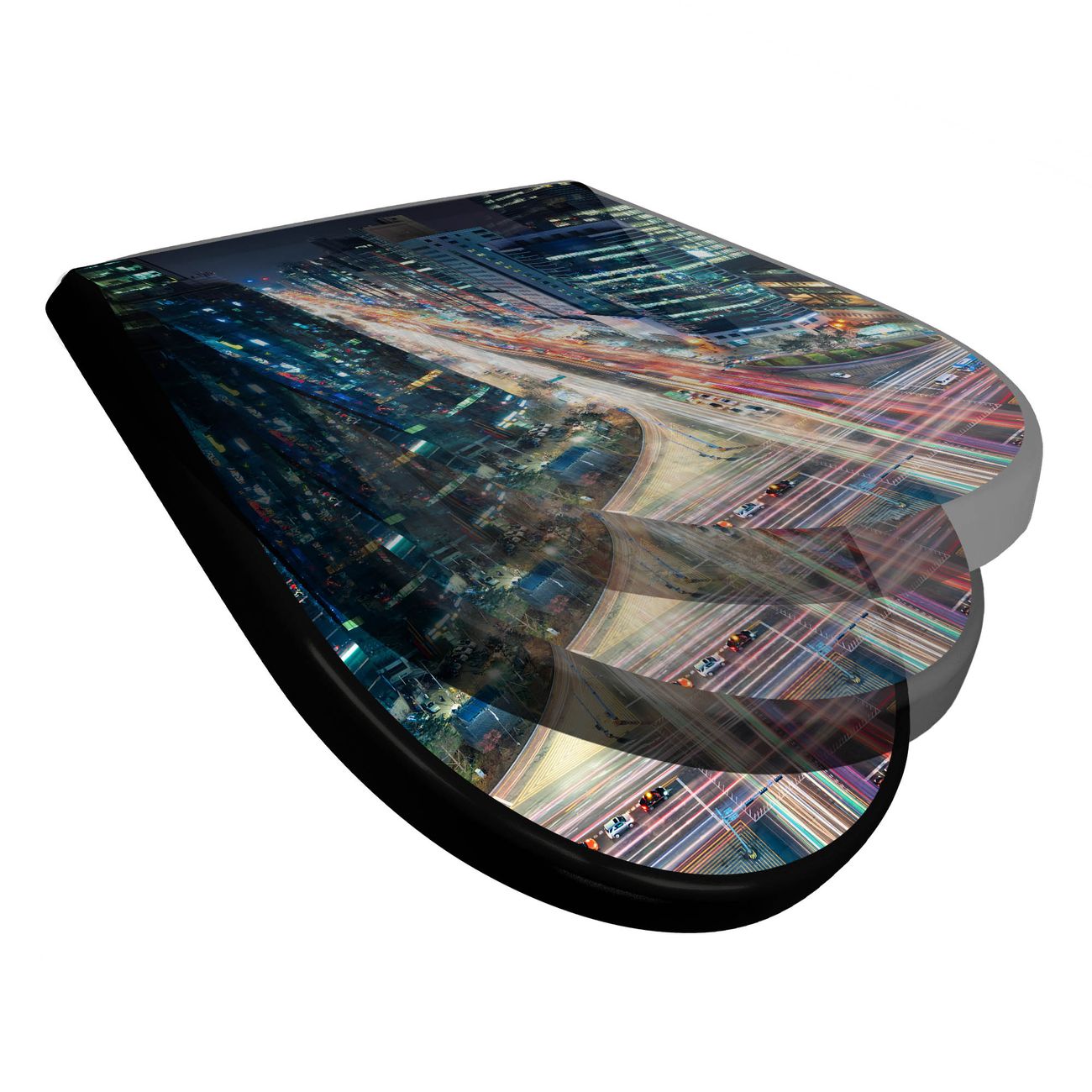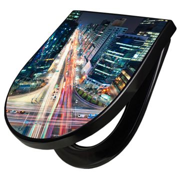 WC Sitz D-Form Schwarz mit Absenkautomatik Motiv Gangnam Bei Nacht