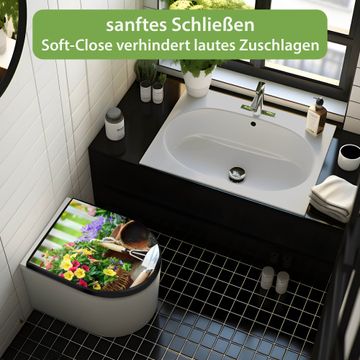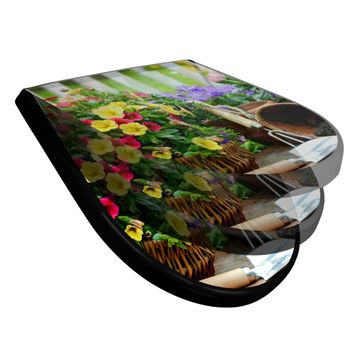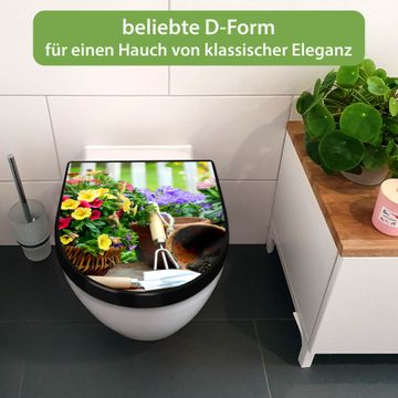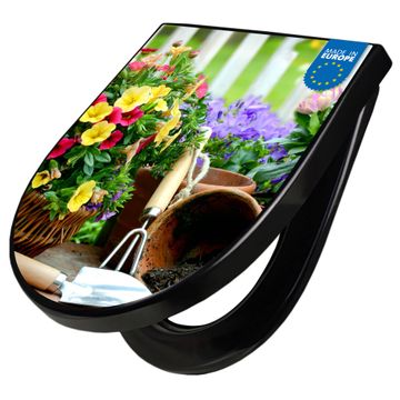 WC Sitz D-Form Schwarz mit Absenkautomatik Motiv Gartenfreude