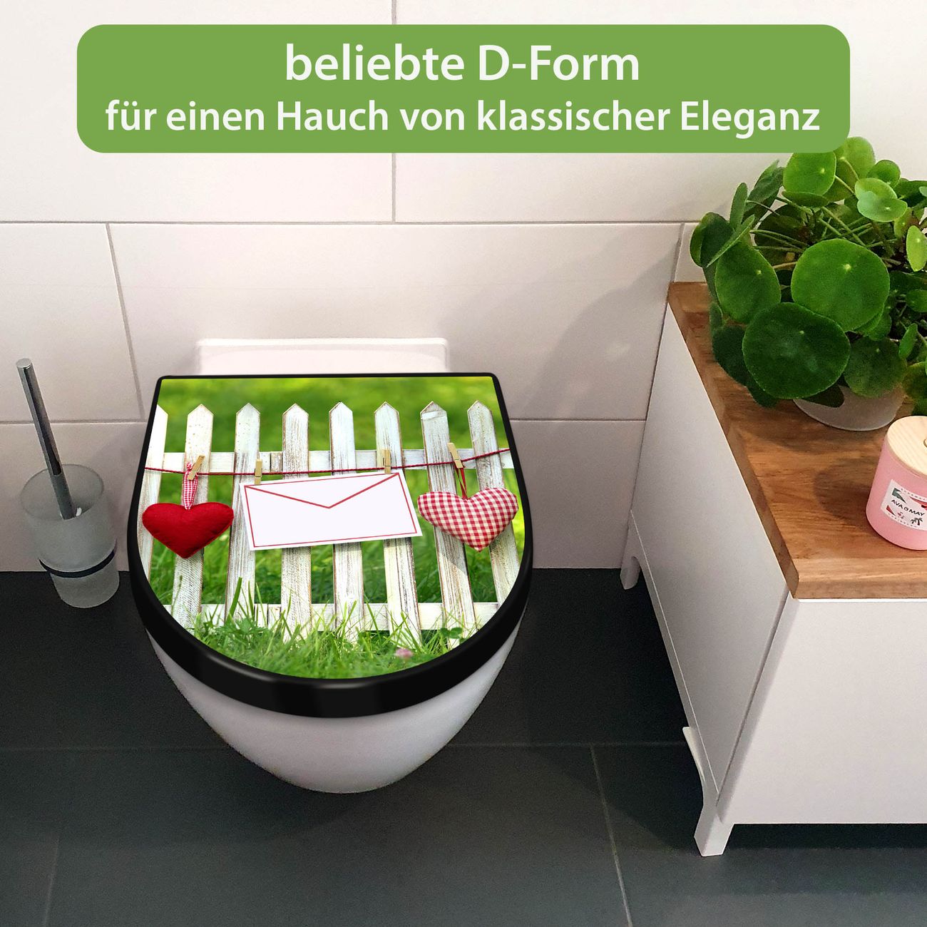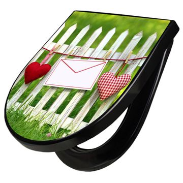WC Sitz D-Form Schwarz mit Absenkautomatik Motiv Gartenzaun