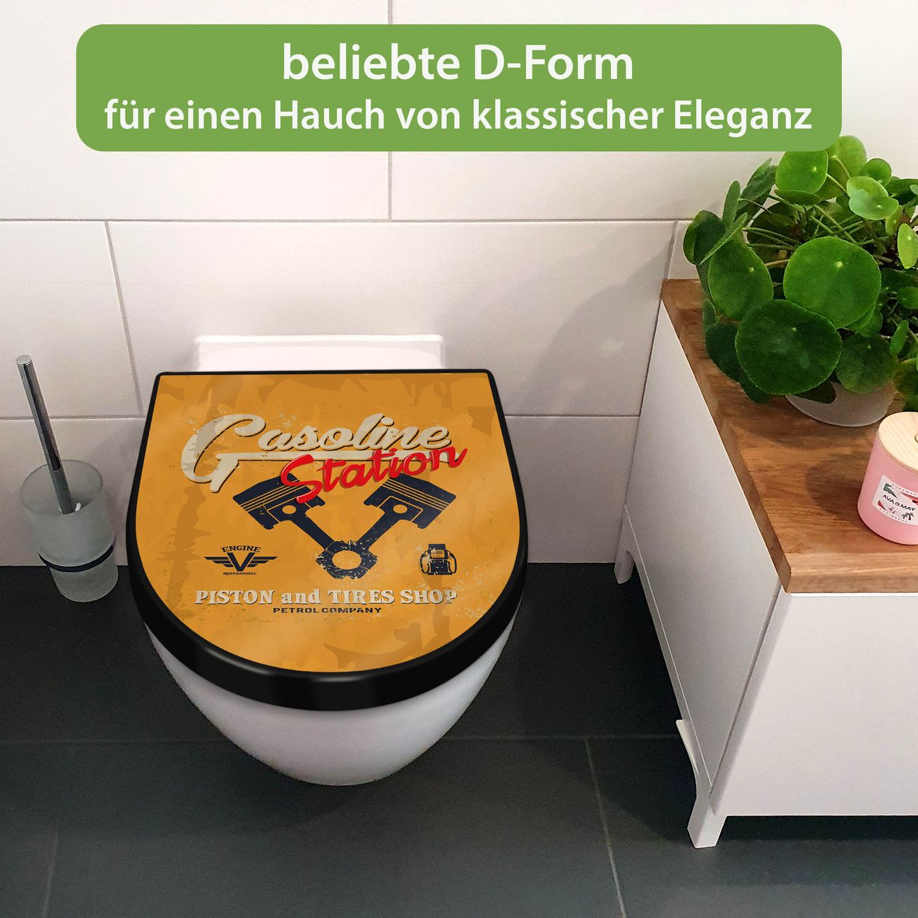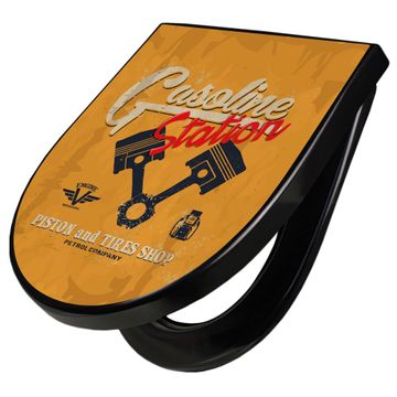 WC Sitz D-Form Schwarz mit Absenkautomatik Motiv Gasoline Station
