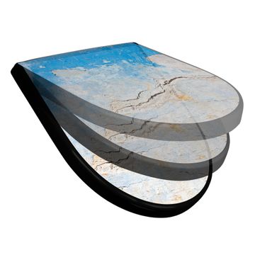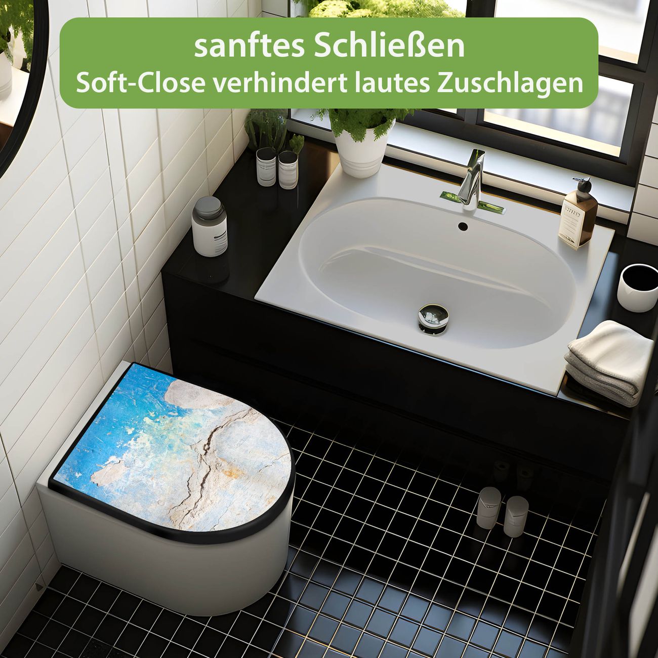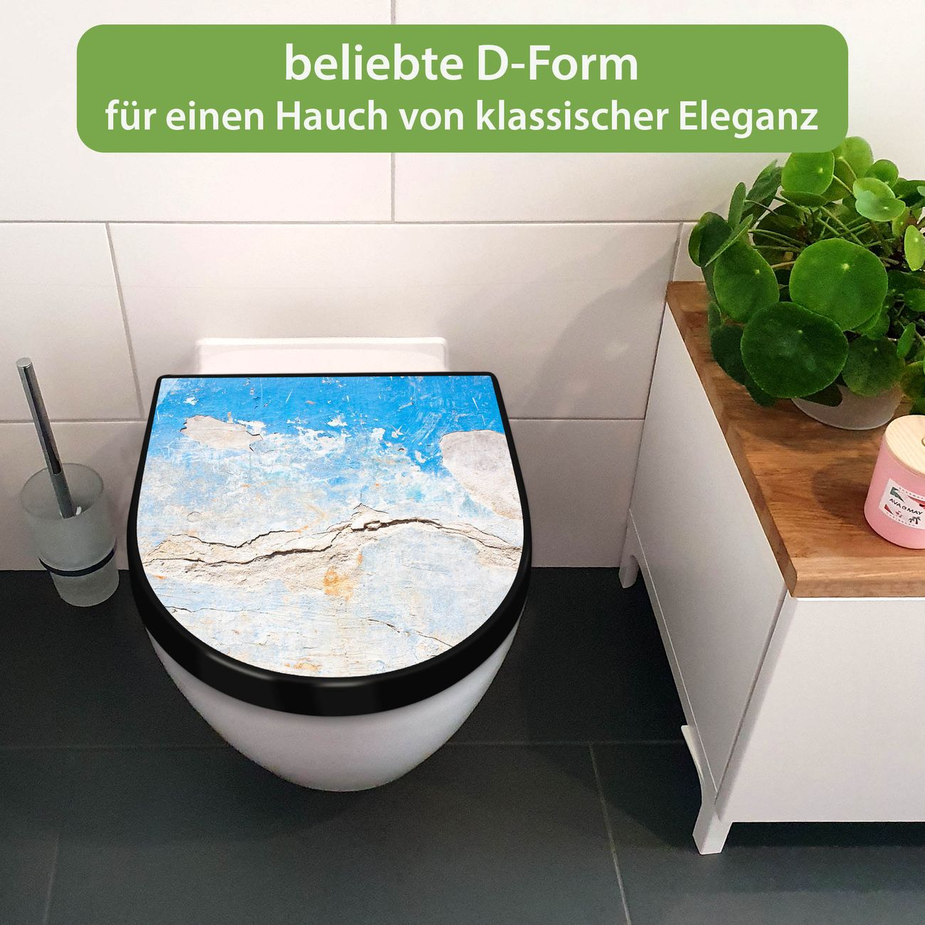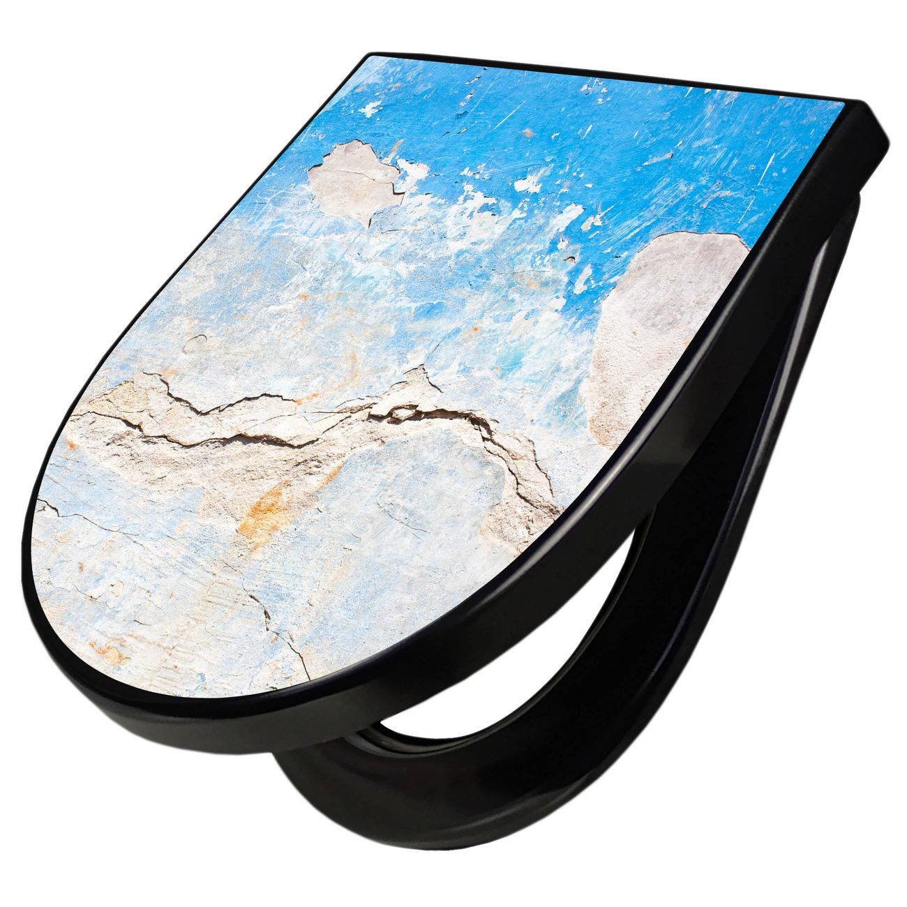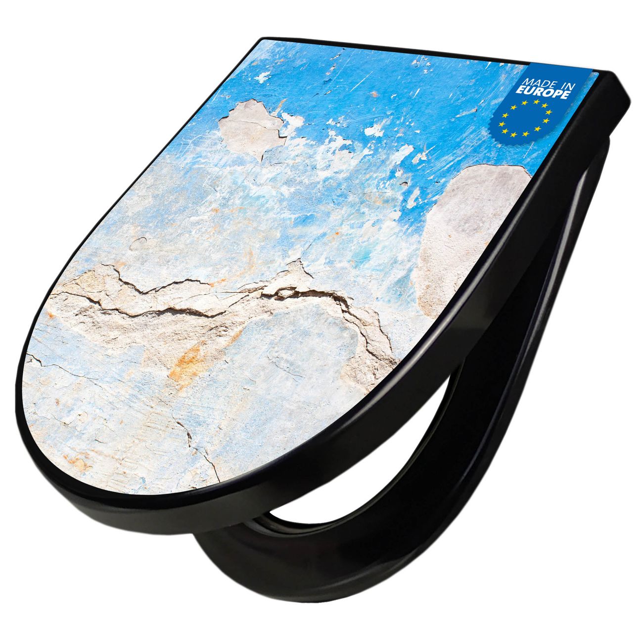 WC Sitz D-Form Schwarz mit Absenkautomatik Motiv Gebrochene Wand
