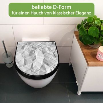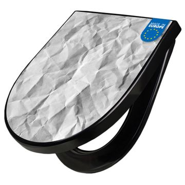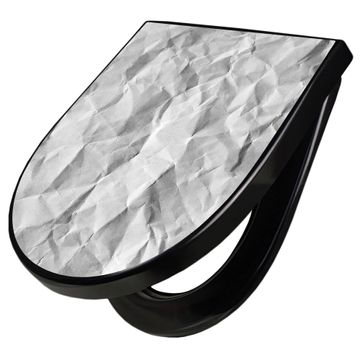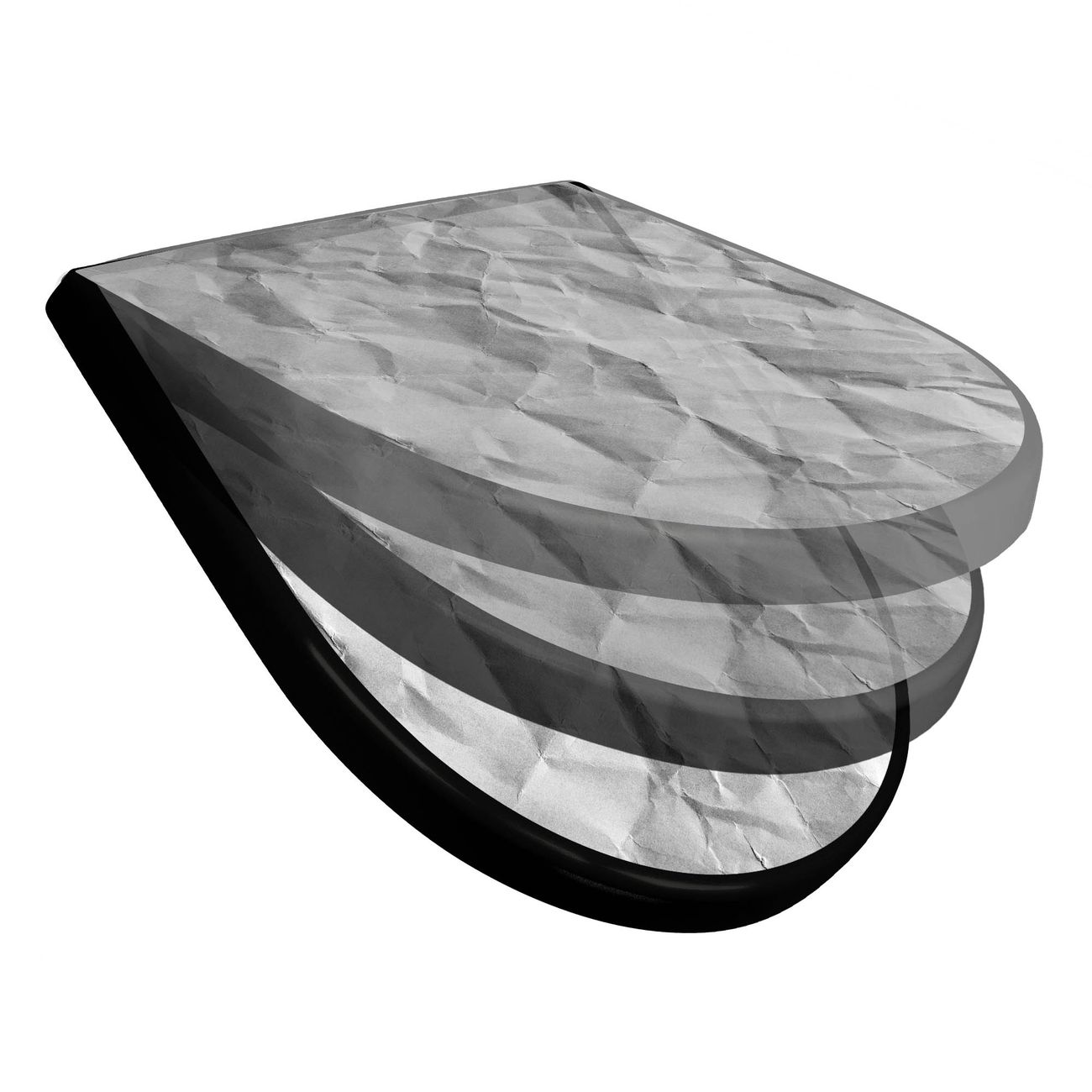 WC Sitz D-Form Schwarz mit Absenkautomatik Motiv Geknittertes Papier Grau