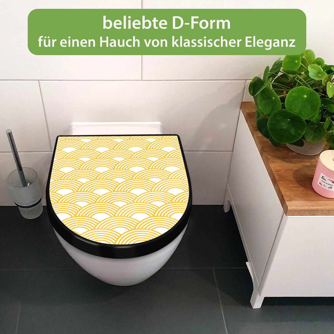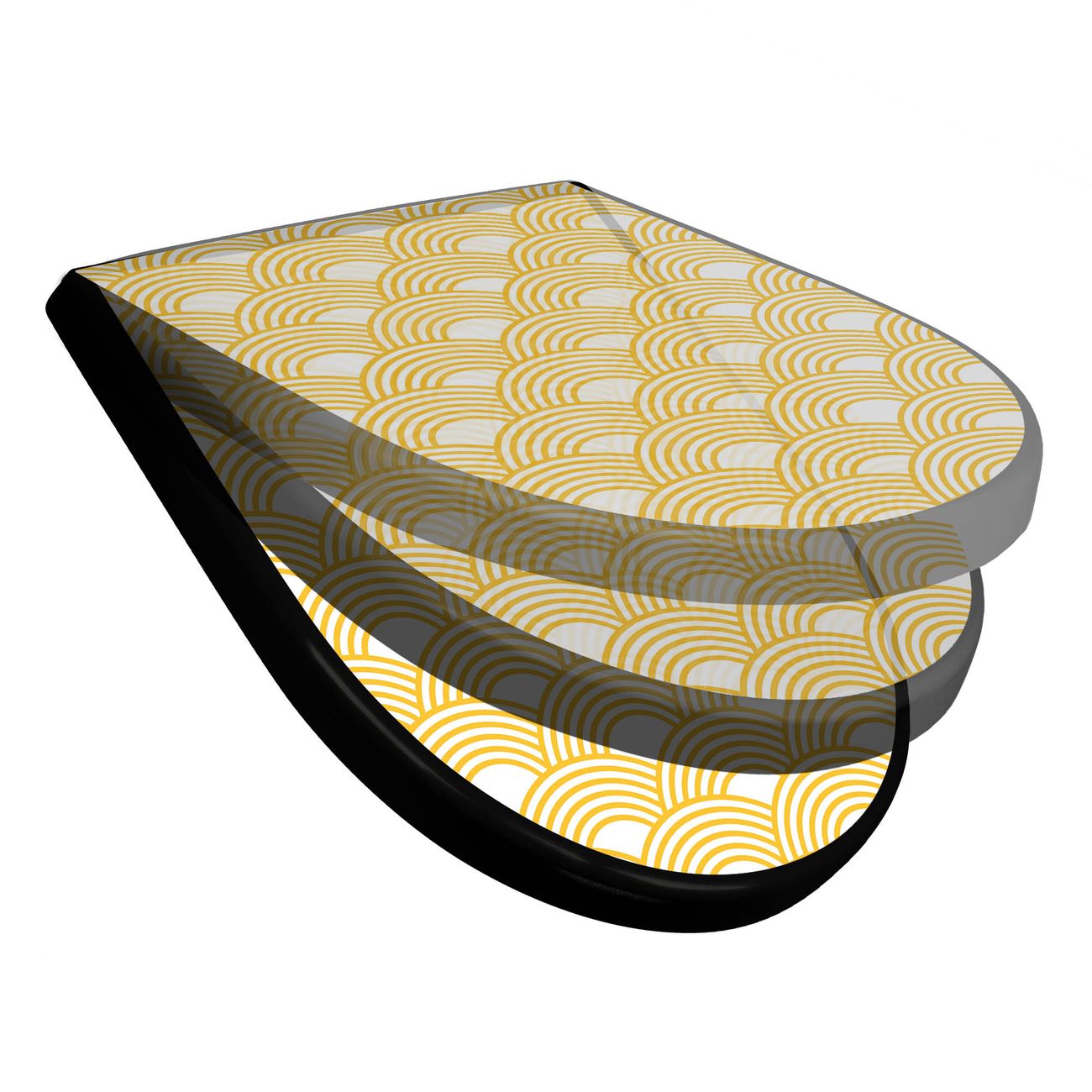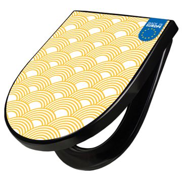 WC Sitz D-Form Schwarz mit Absenkautomatik Motiv Gelbe Wellen