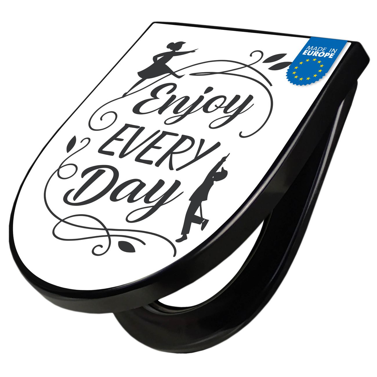 WC Sitz D-Form Schwarz mit Absenkautomatik Motiv Genieße Jeden Tag