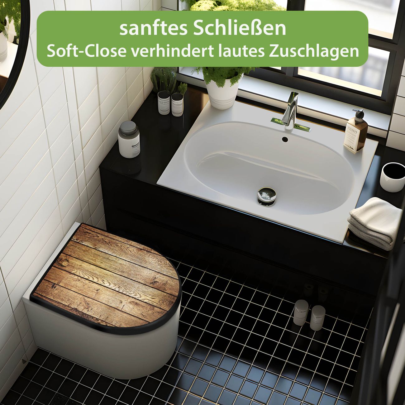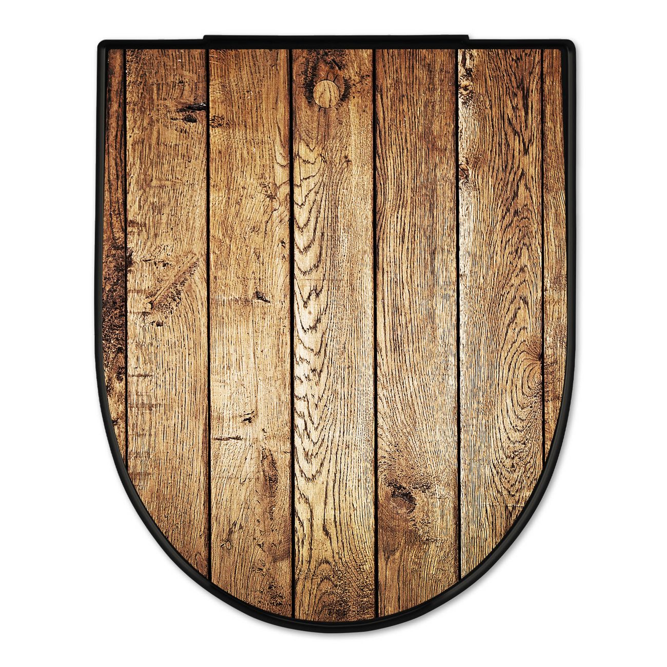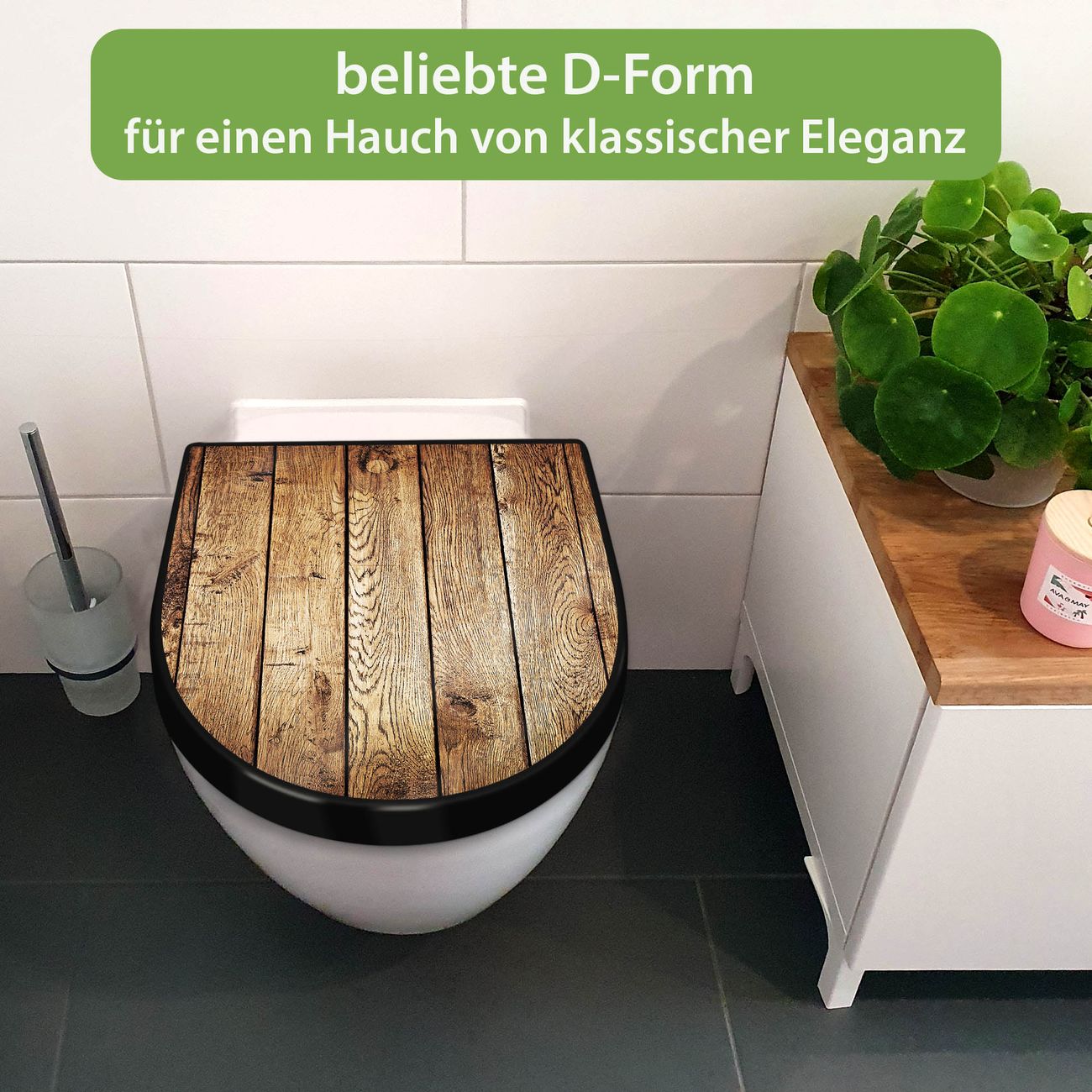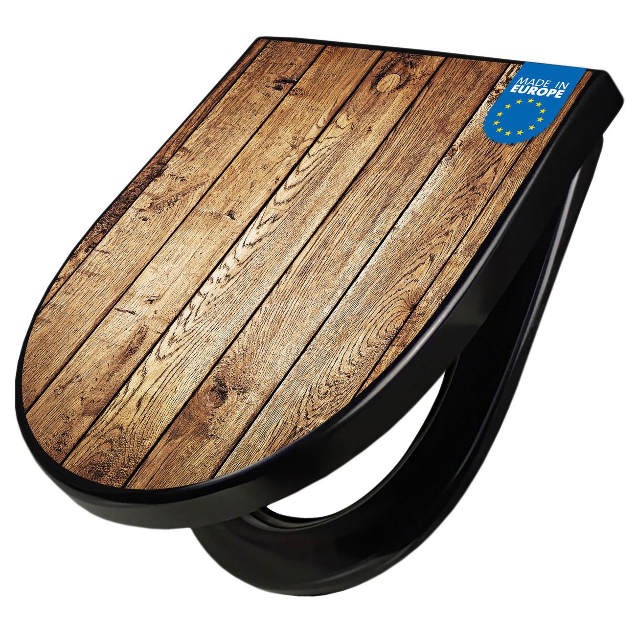 WC Sitz D-Form Schwarz mit Absenkautomatik Motiv Geöltes Holz