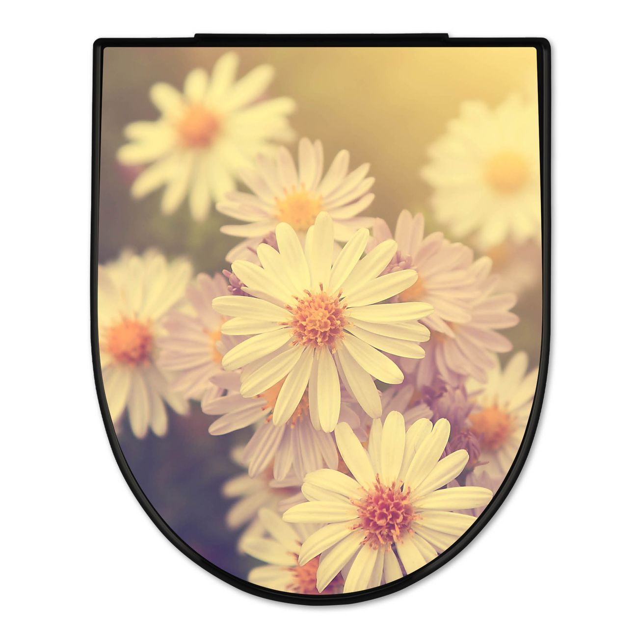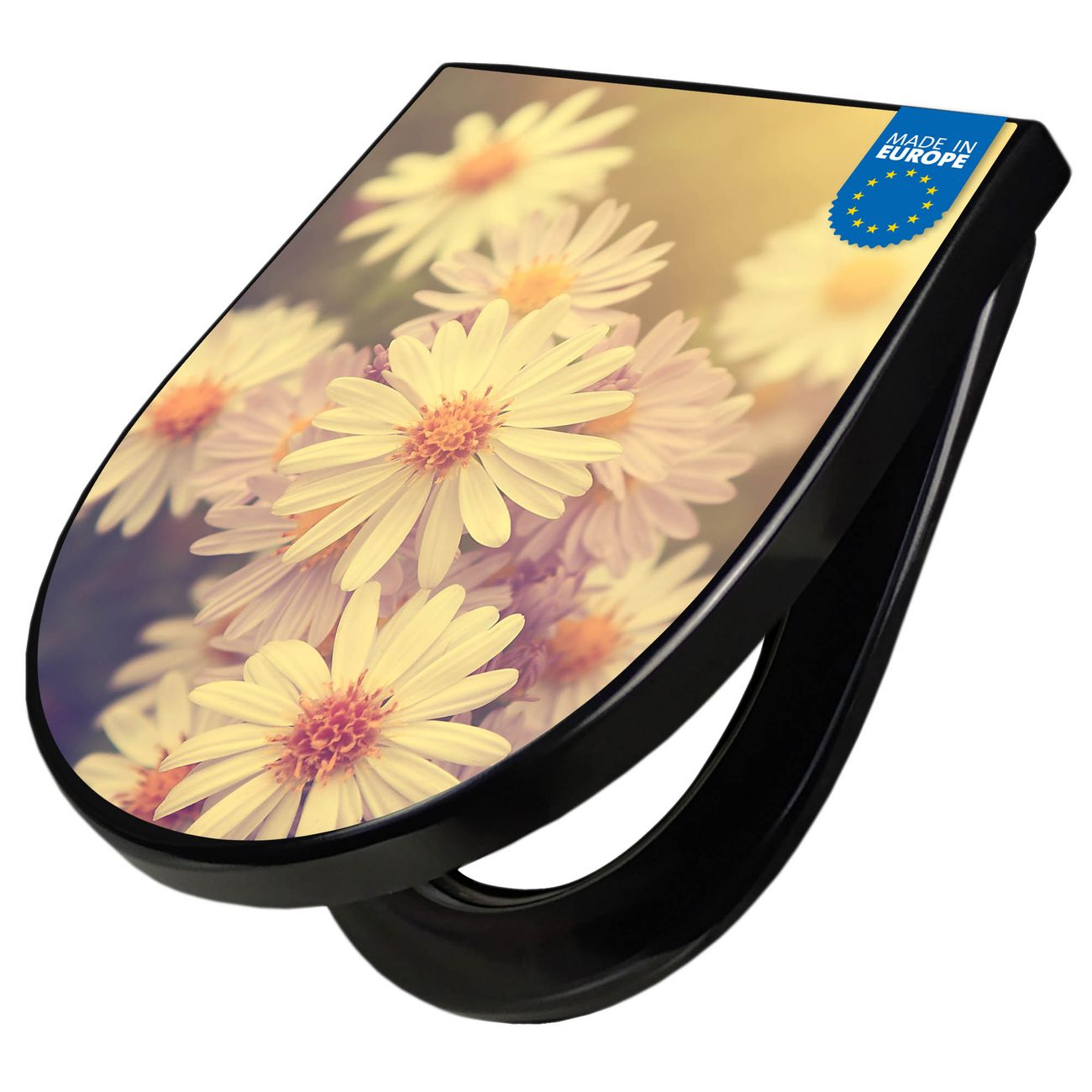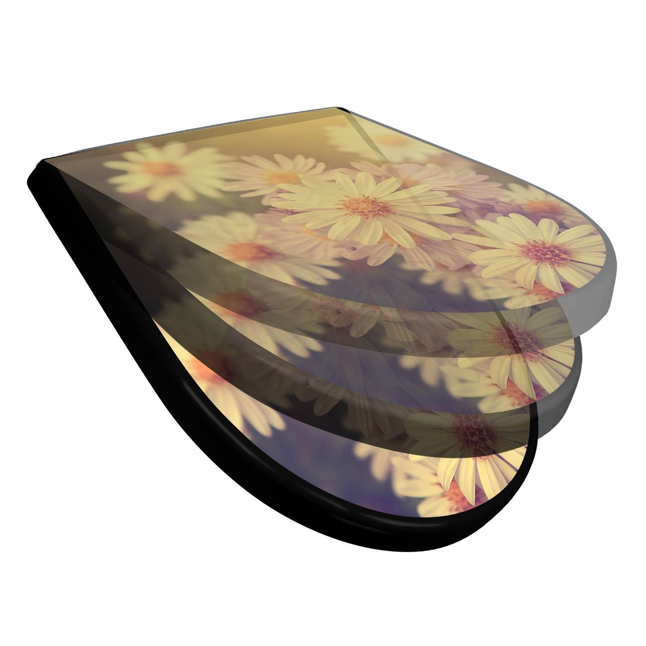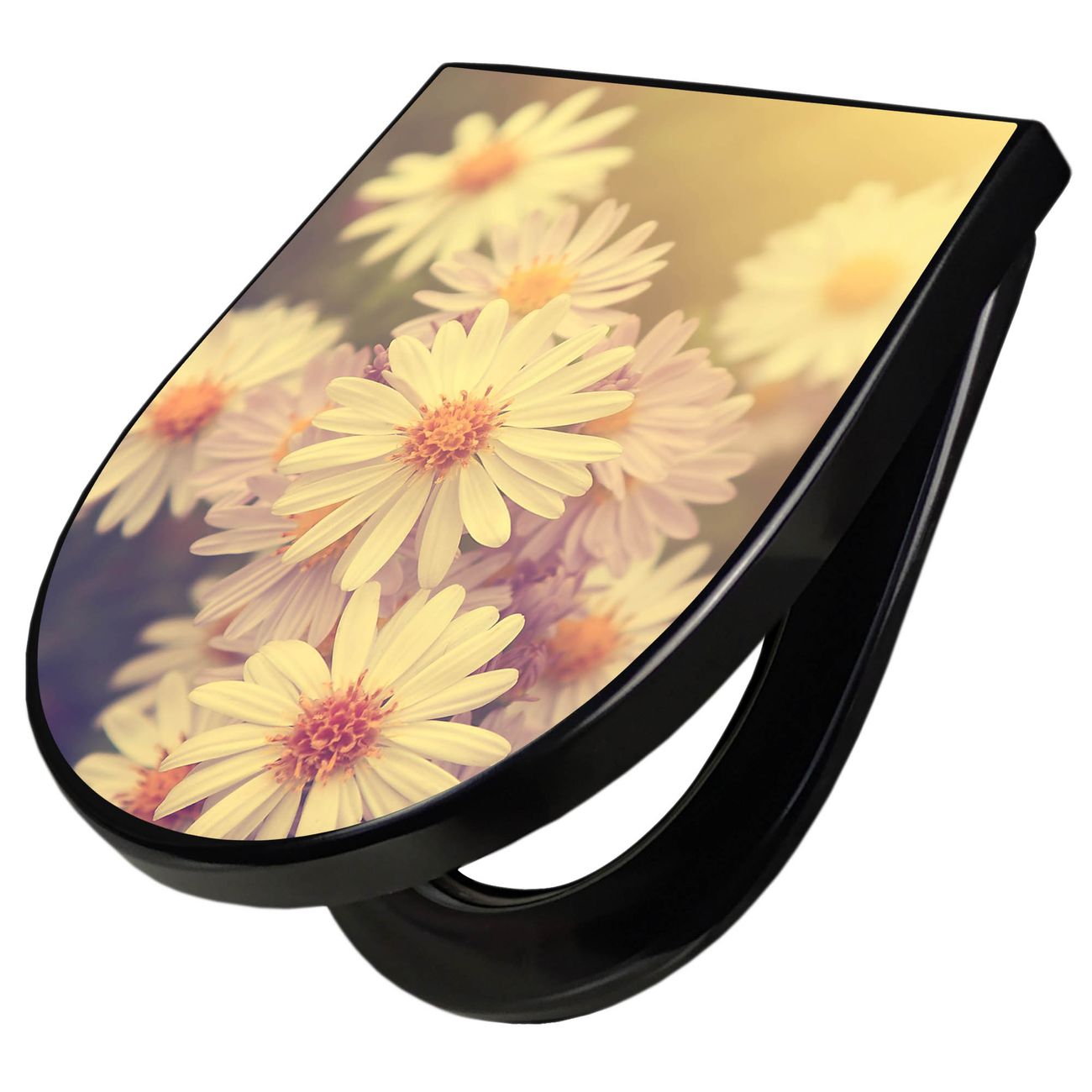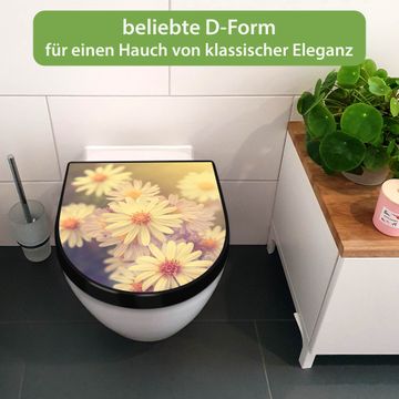 WC Sitz D-Form Schwarz mit Absenkautomatik Motiv Gerbera 3
