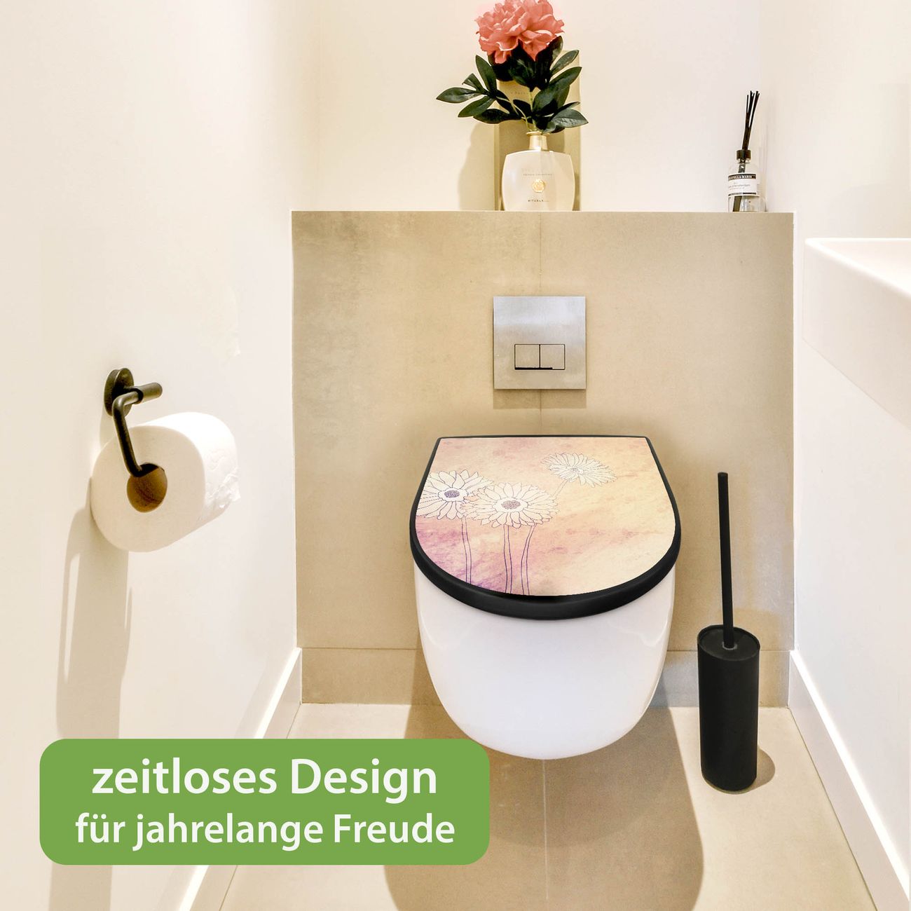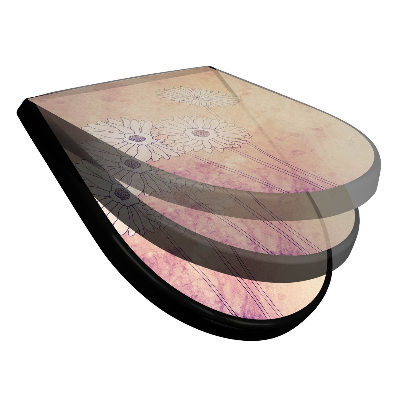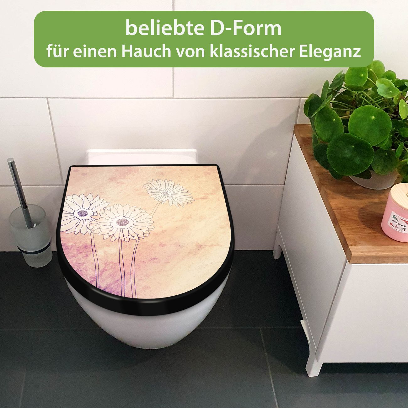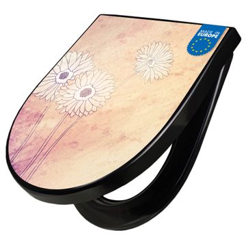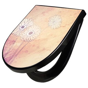 WC Sitz D-Form Schwarz mit Absenkautomatik Motiv Gerbera