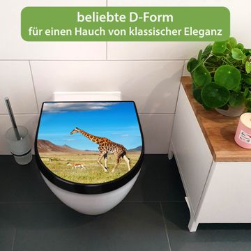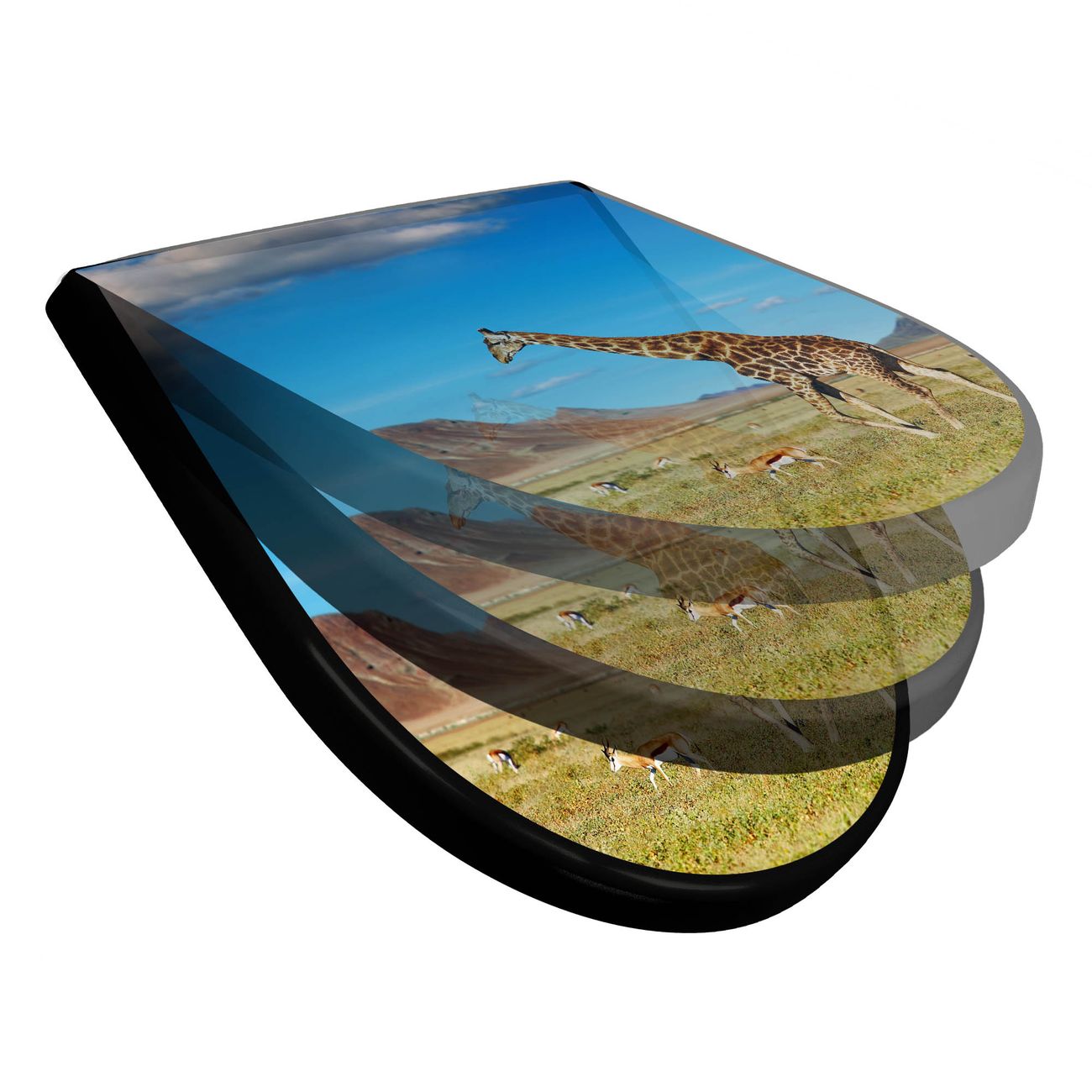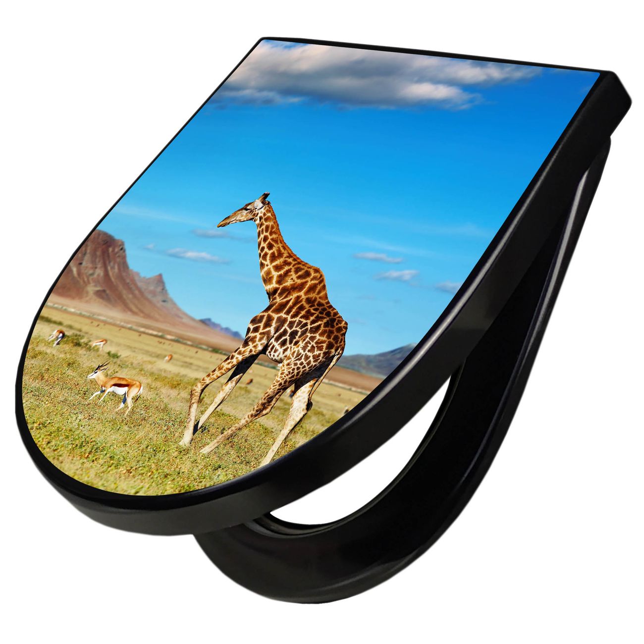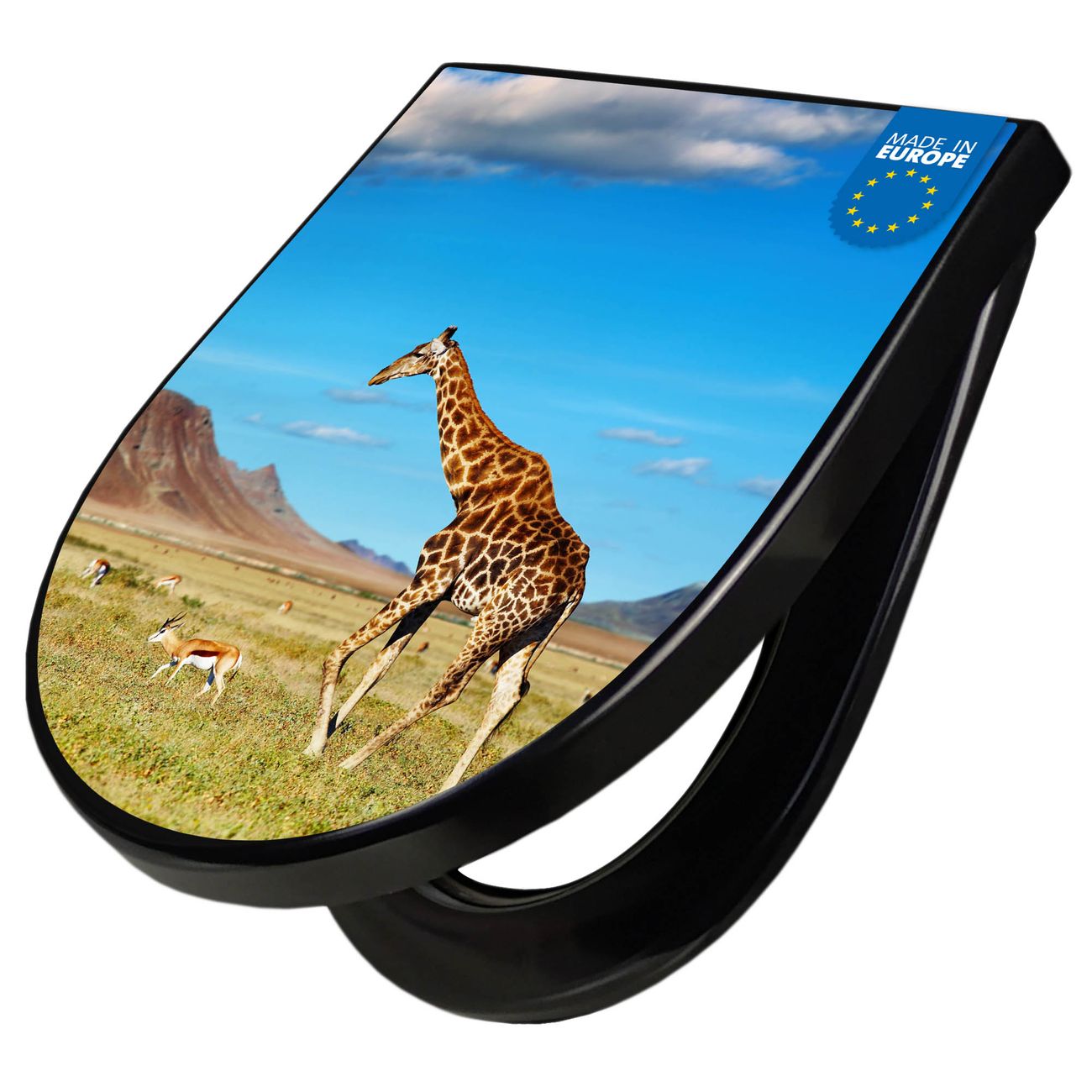 WC Sitz D-Form Schwarz mit Absenkautomatik Motiv Giraffe