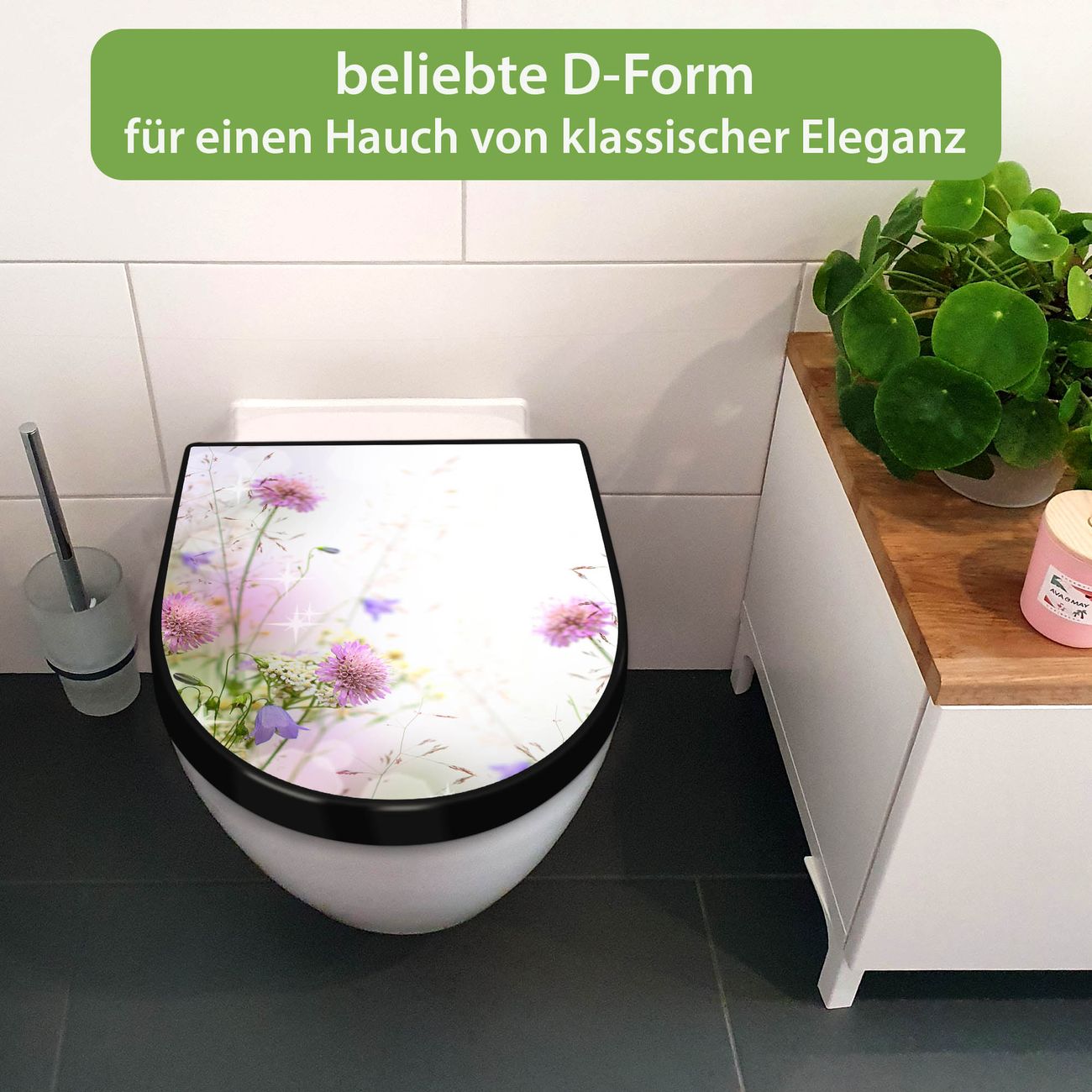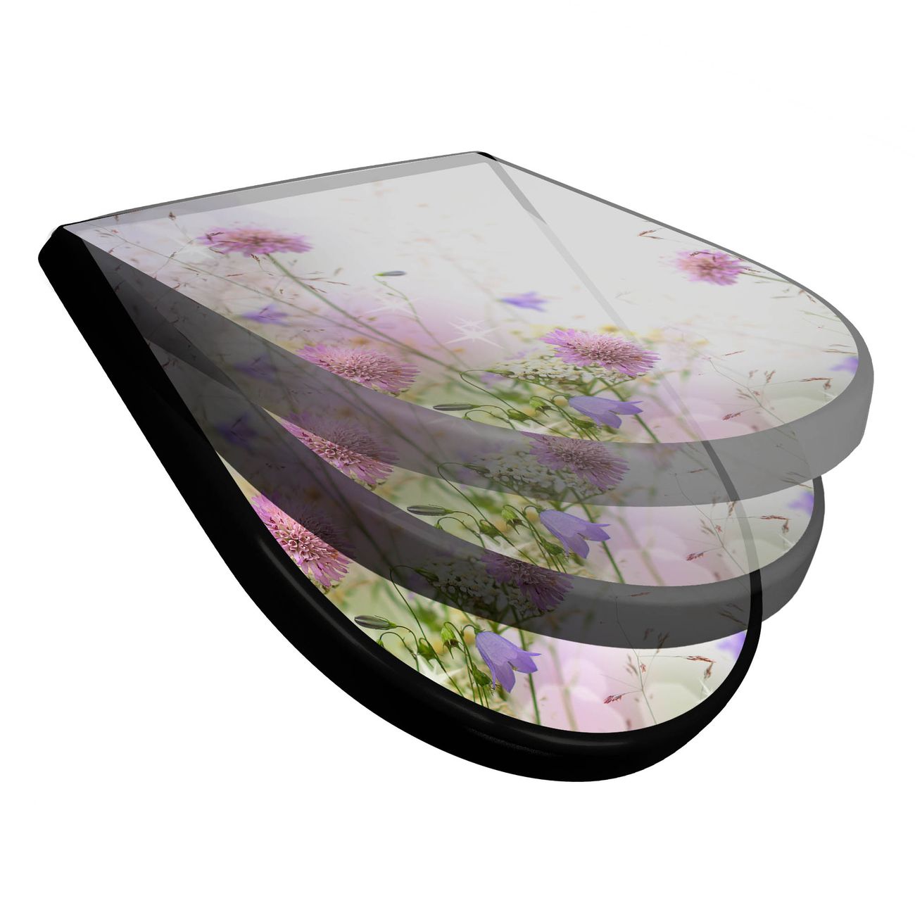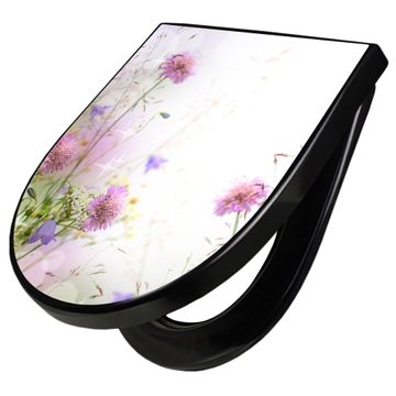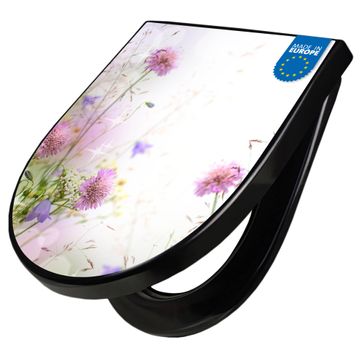 WC Sitz D-Form Schwarz mit Absenkautomatik Motiv Glitzernde Wiese