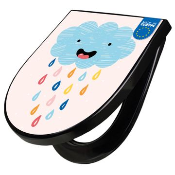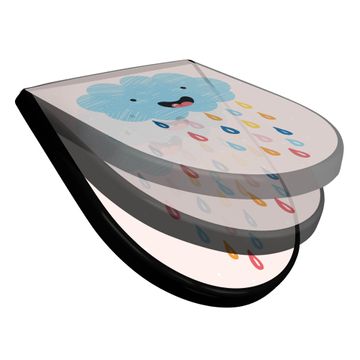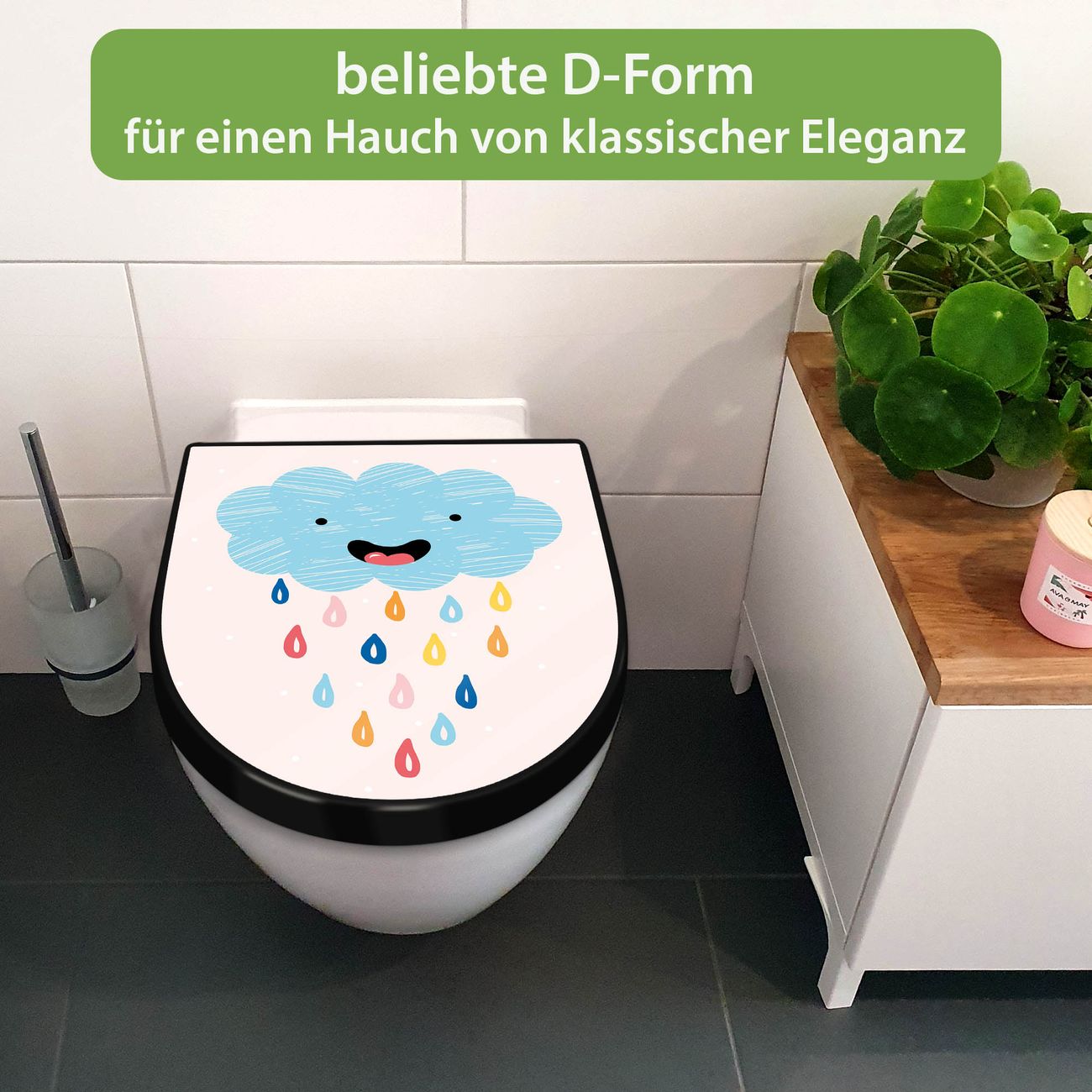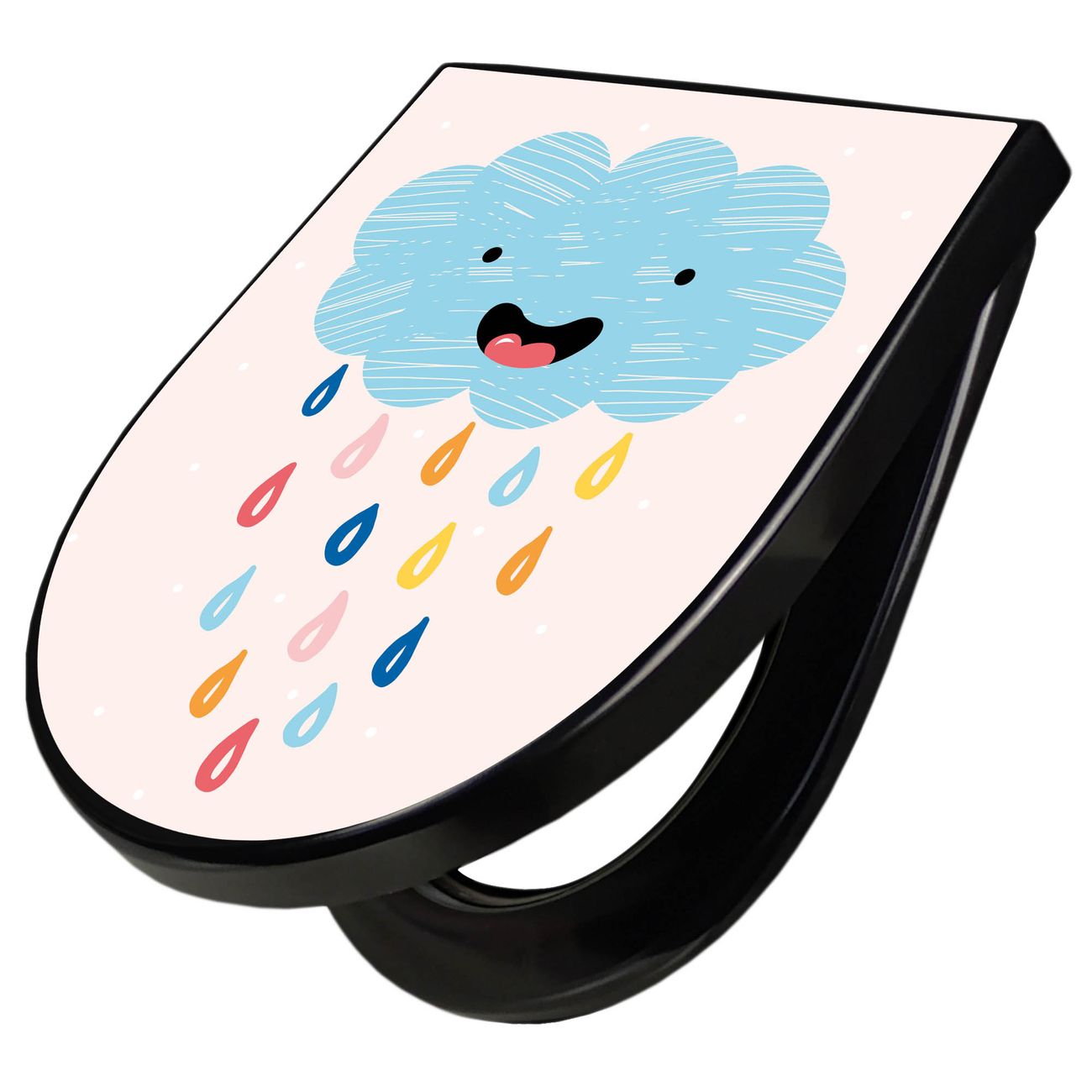 WC Sitz D-Form Schwarz mit Absenkautomatik Motiv glückliche Regenwolke