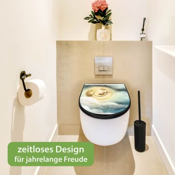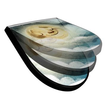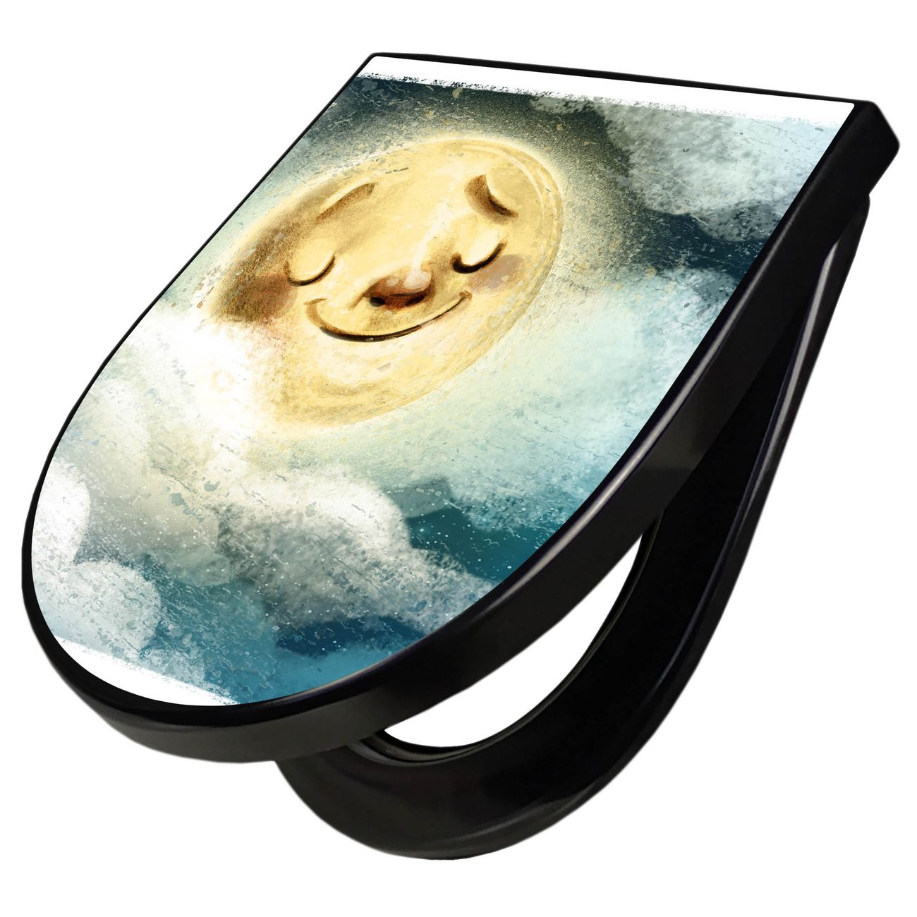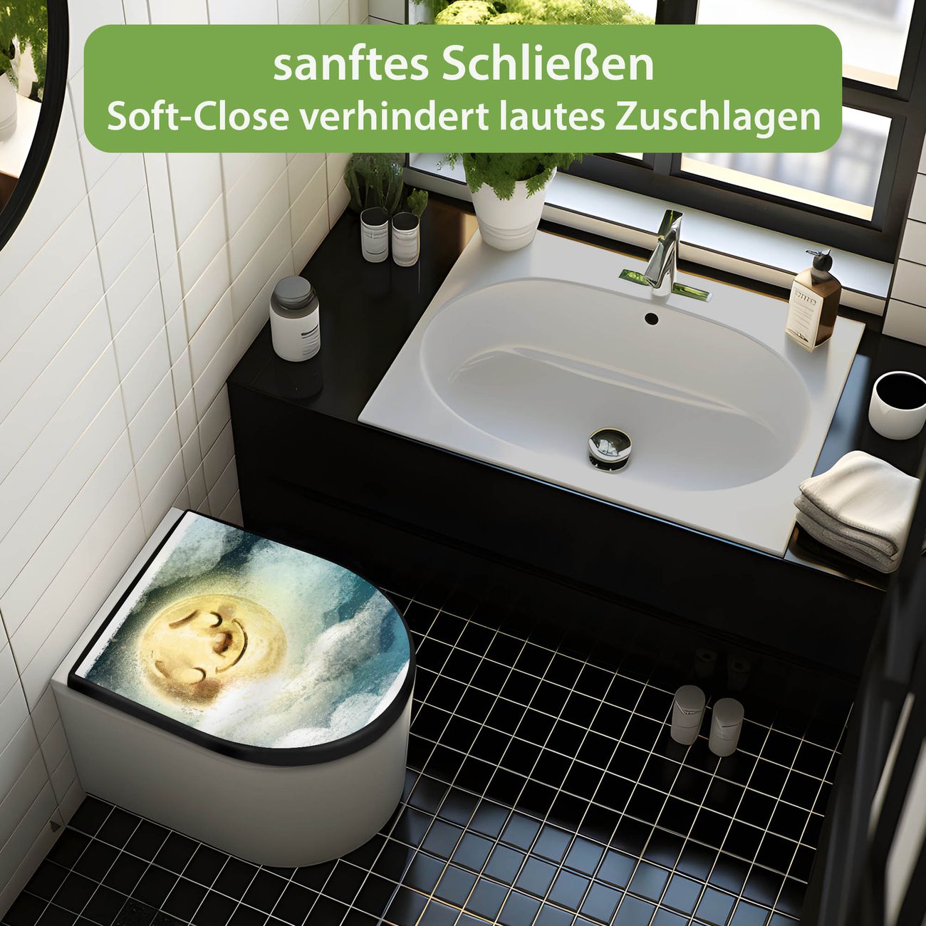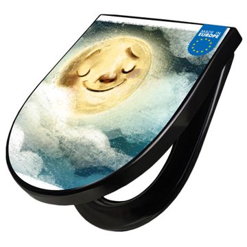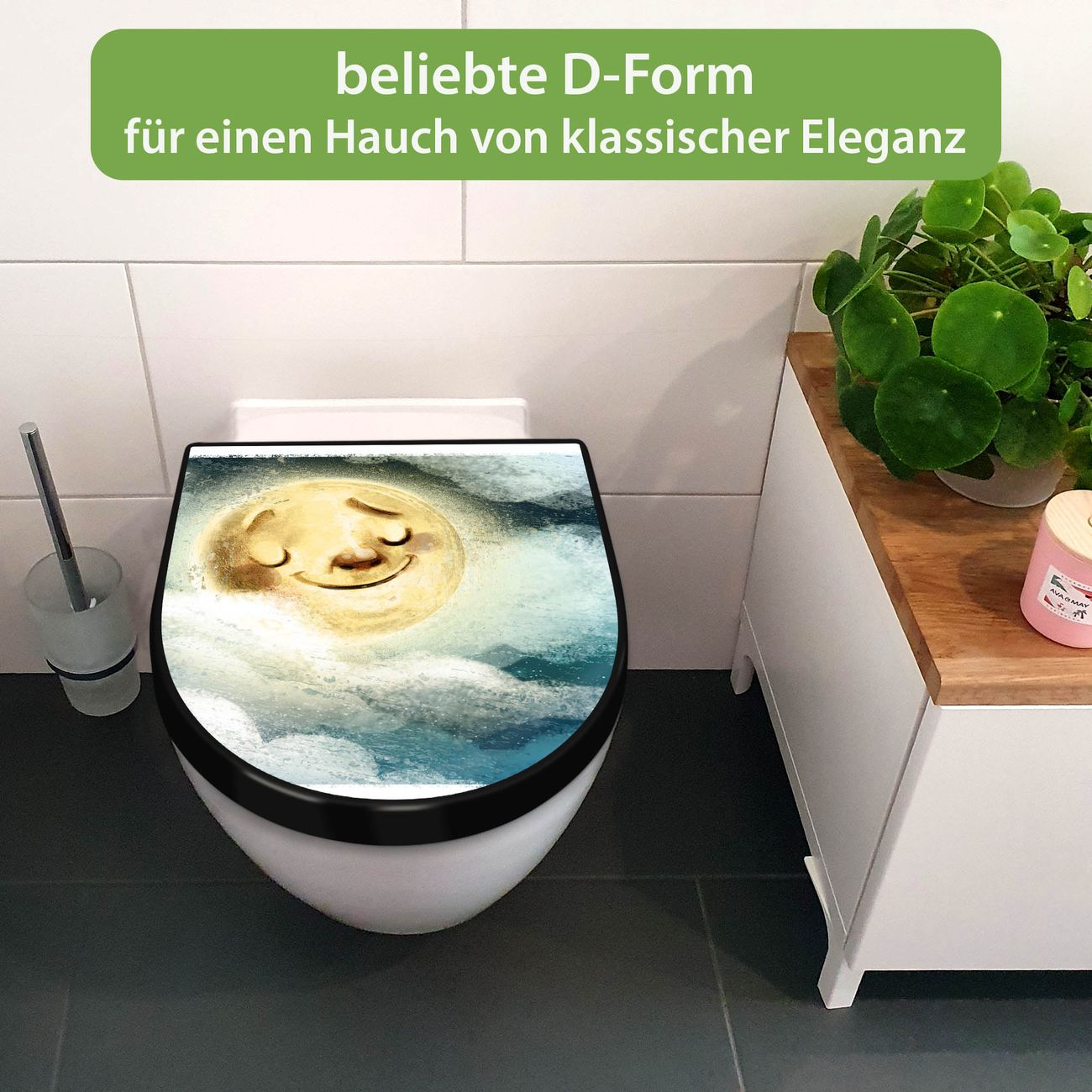 WC Sitz D-Form Schwarz mit Absenkautomatik Motiv Glücksmond