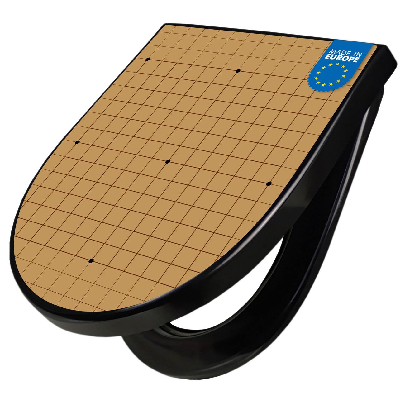 WC Sitz D-Form Schwarz mit Absenkautomatik Motiv Go Brett