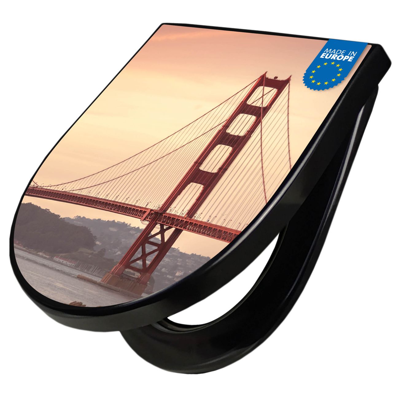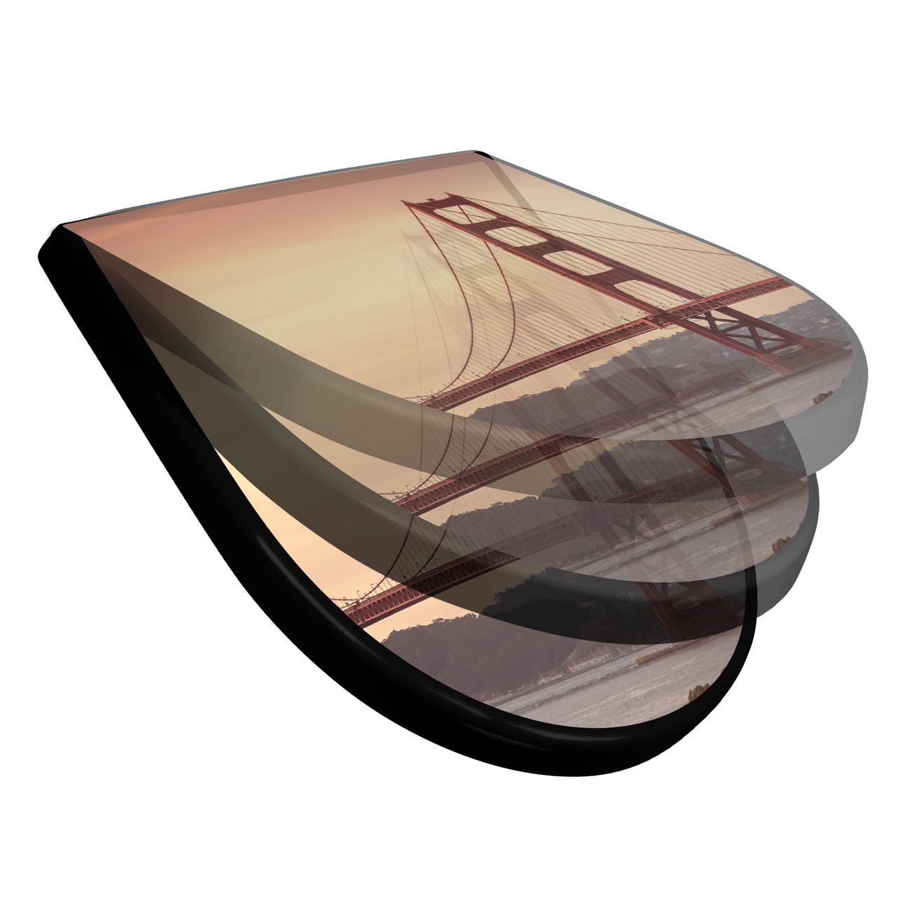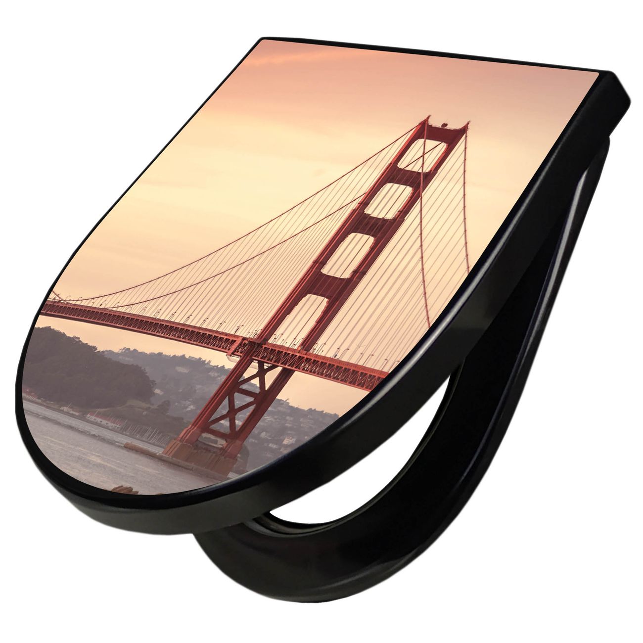 WC Sitz D-Form Schwarz mit Absenkautomatik Motiv Golden Gate Bridge 2