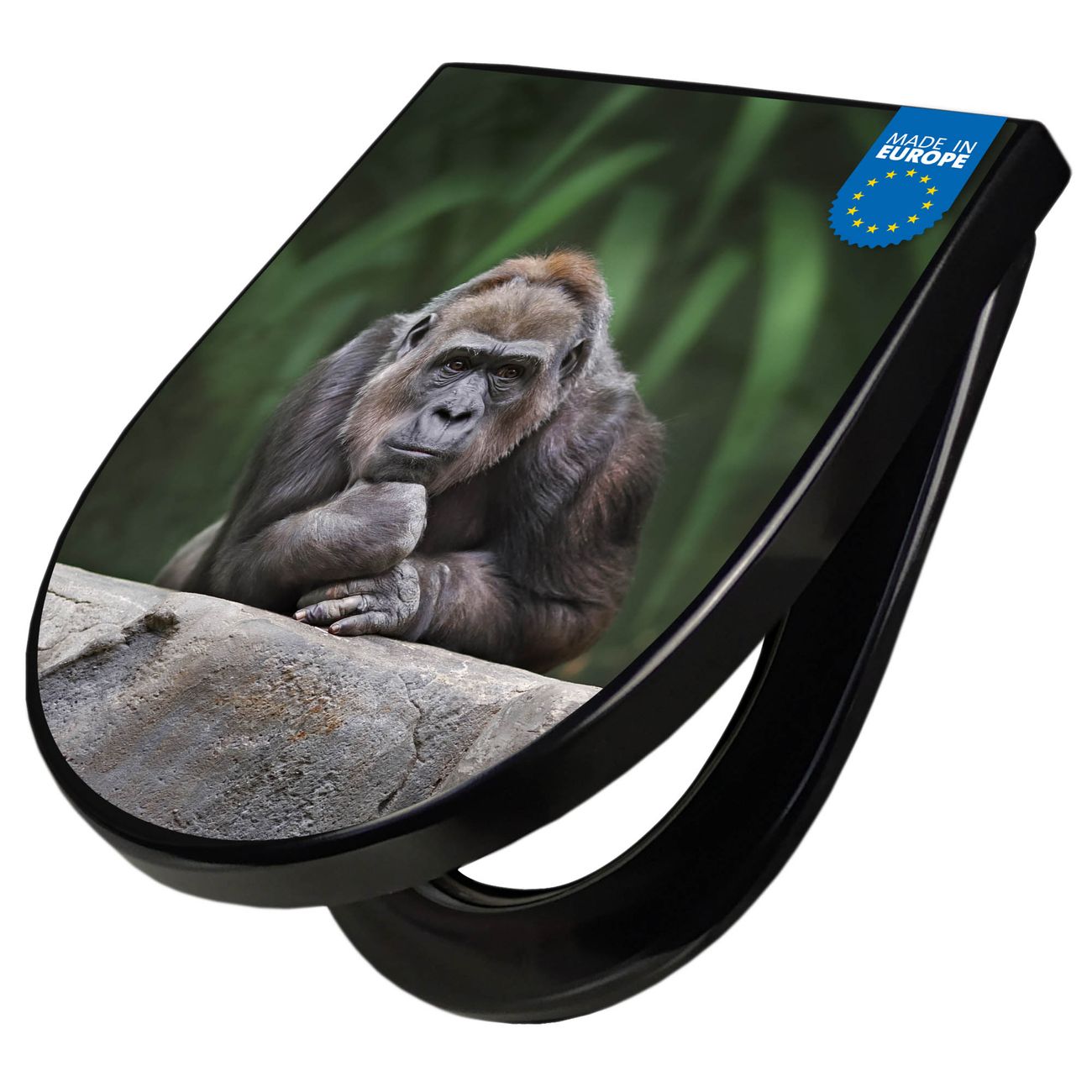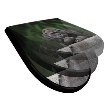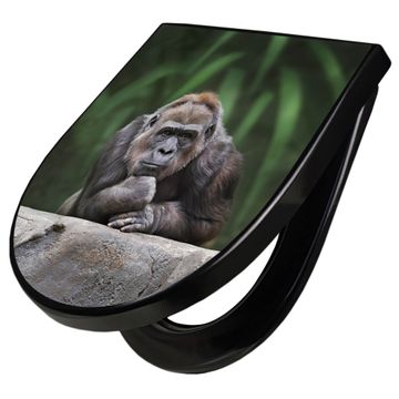 WC Sitz D-Form Schwarz mit Absenkautomatik Motiv Gorilla