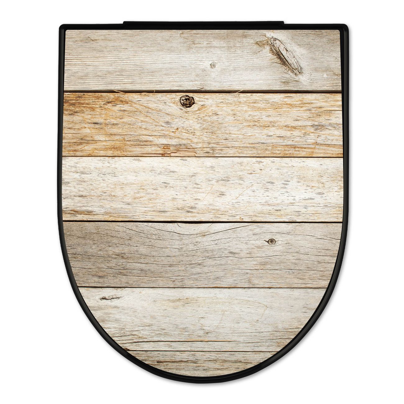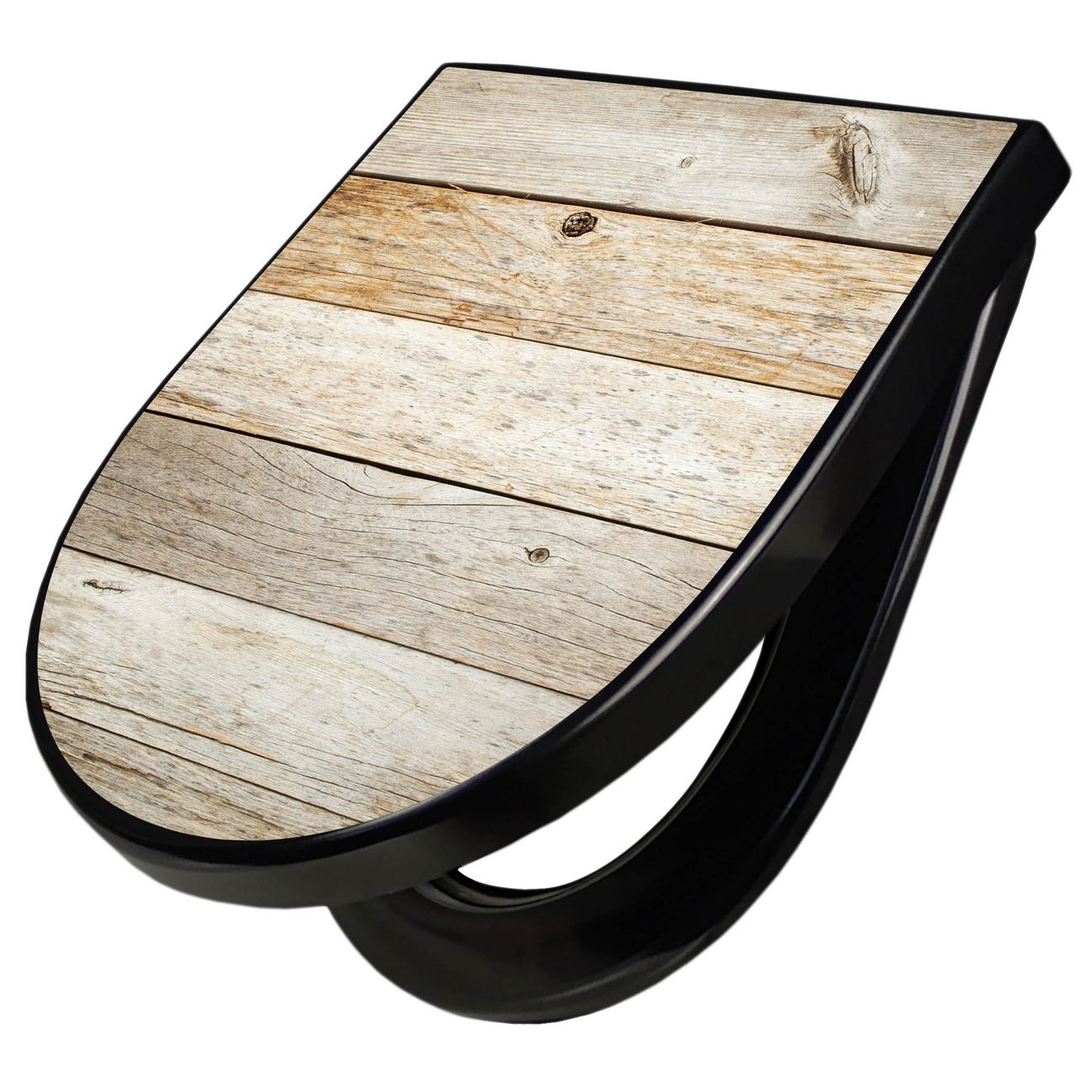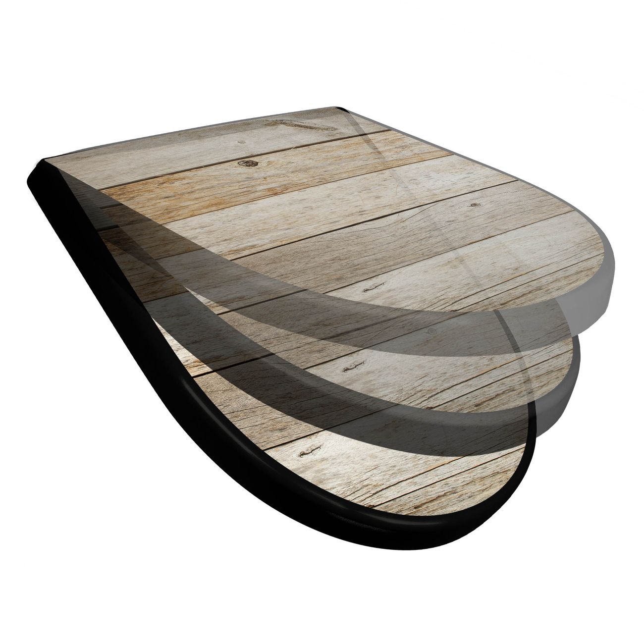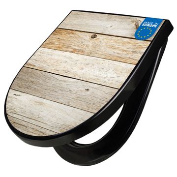 WC Sitz D-Form Schwarz mit Absenkautomatik Motiv Graues Holz