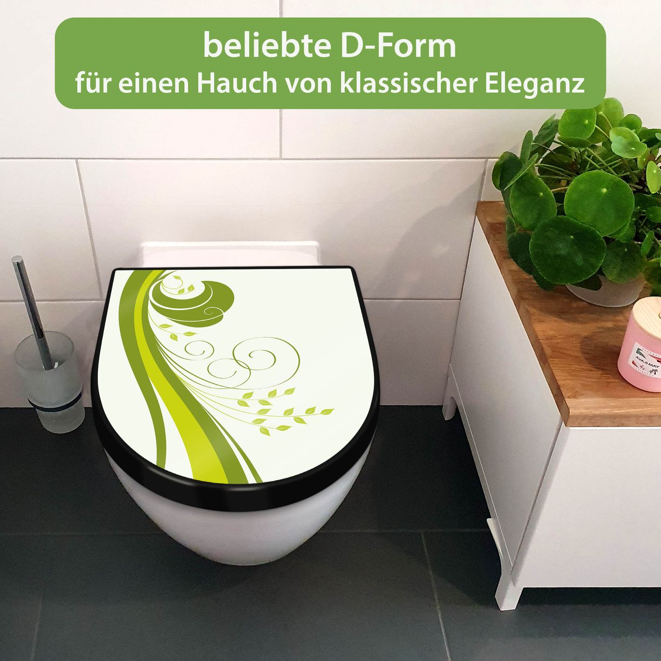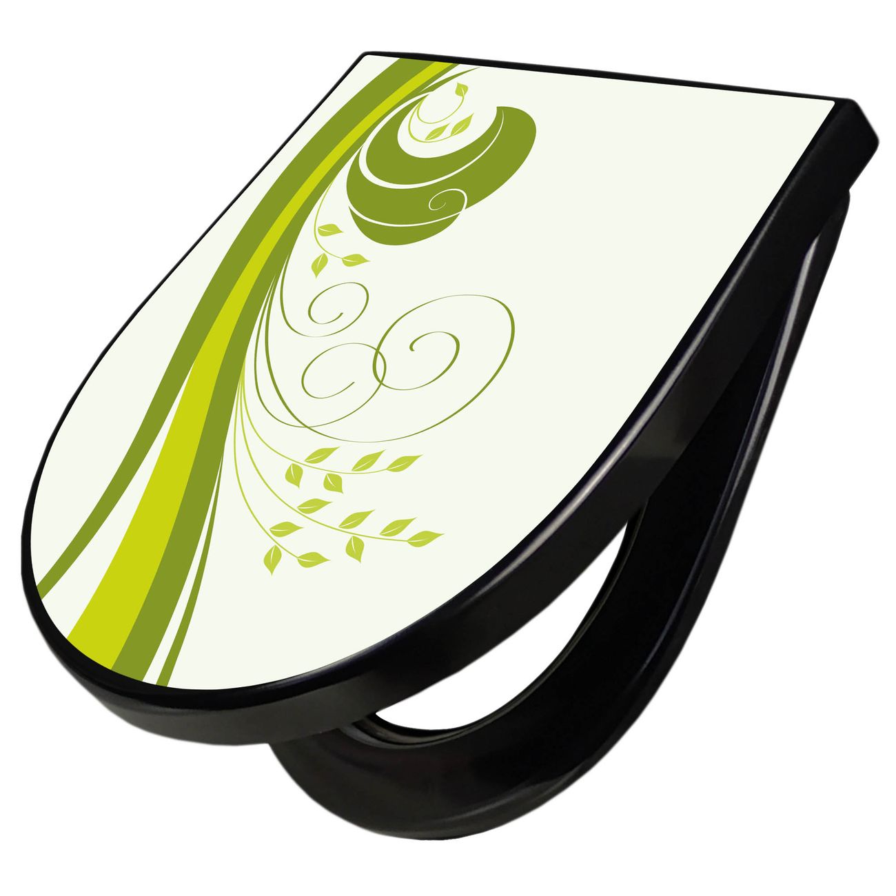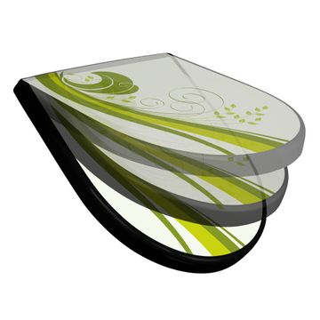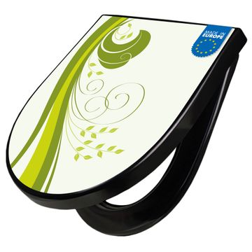 WC Sitz D-Form Schwarz mit Absenkautomatik Motiv Green Swirl
