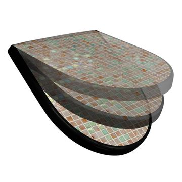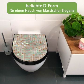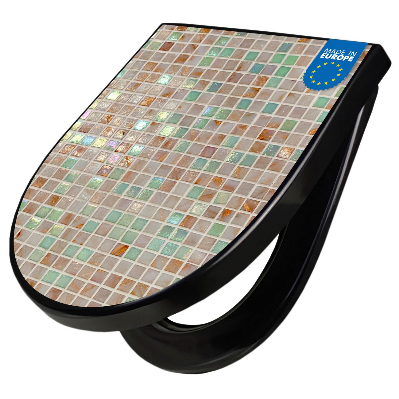 WC Sitz D-Form Schwarz mit Absenkautomatik Motiv Grüne Fliesen