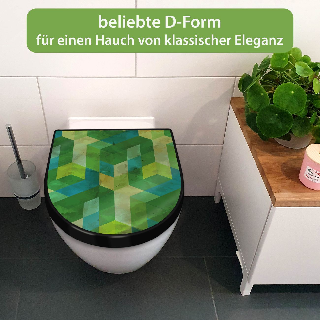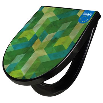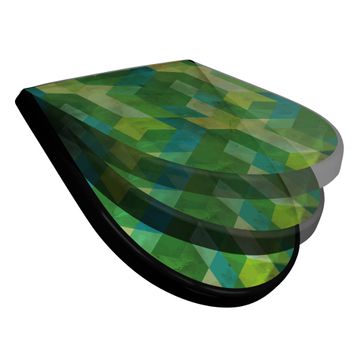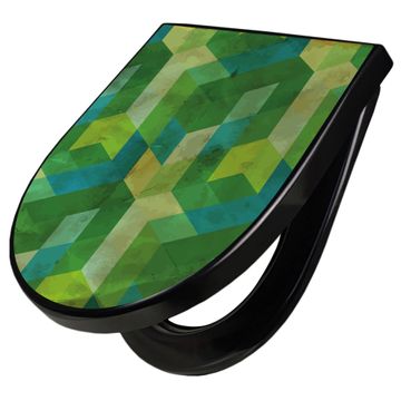 WC Sitz D-Form Schwarz mit Absenkautomatik Motiv Grüne Würfel