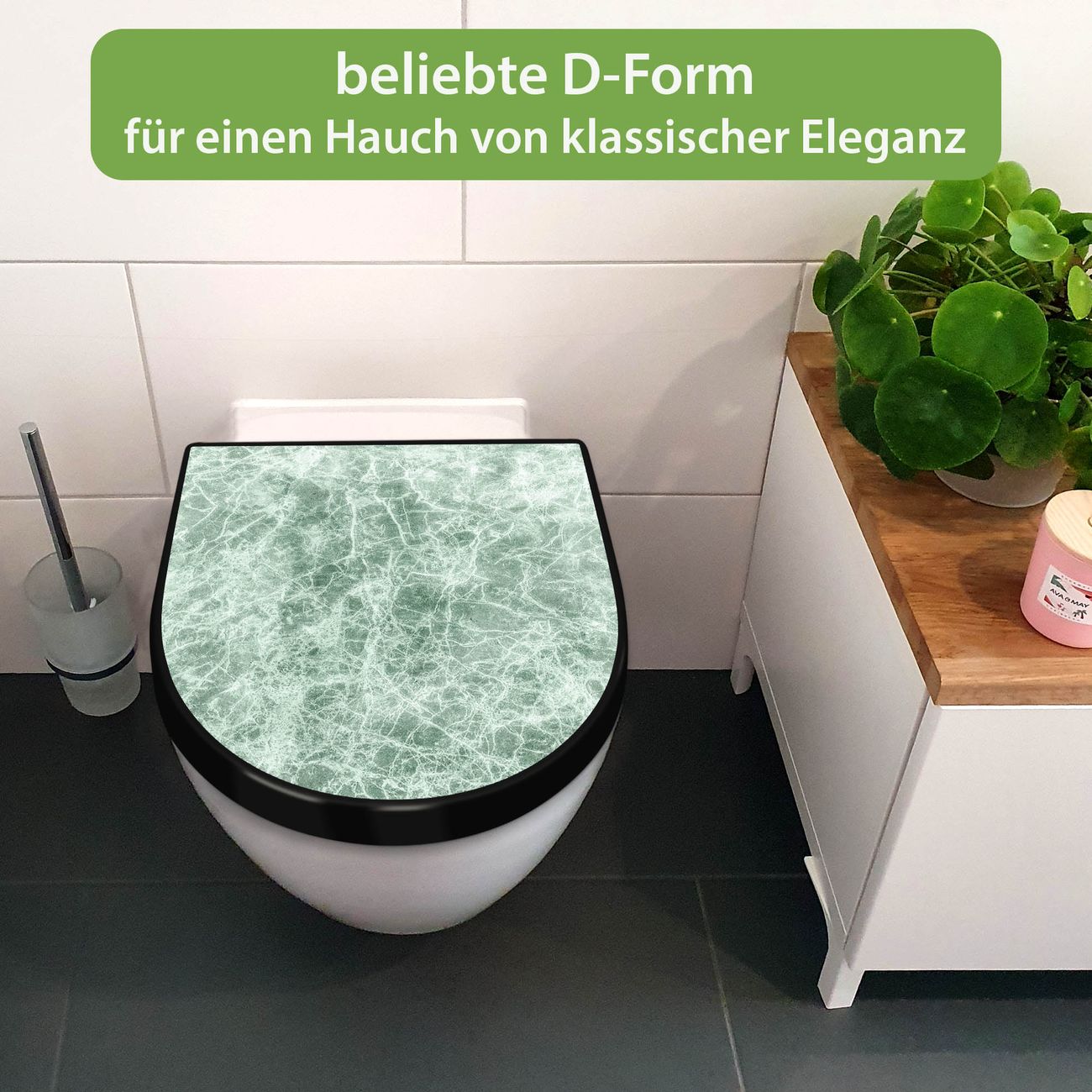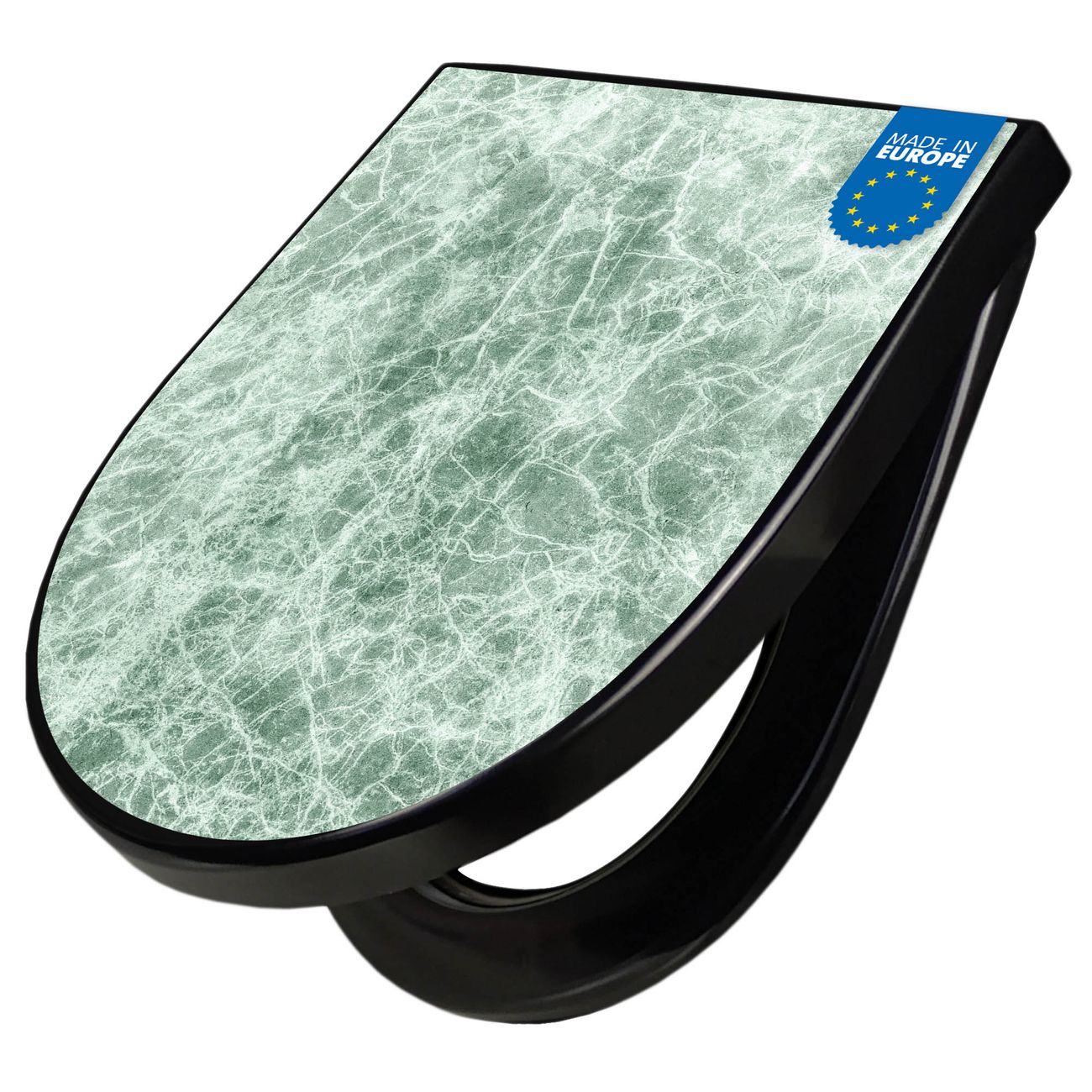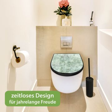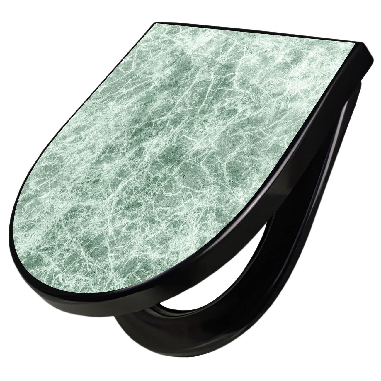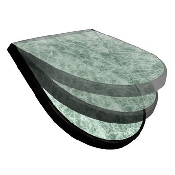 WC Sitz D-Form Schwarz mit Absenkautomatik Motiv Grüner Marmor 1
