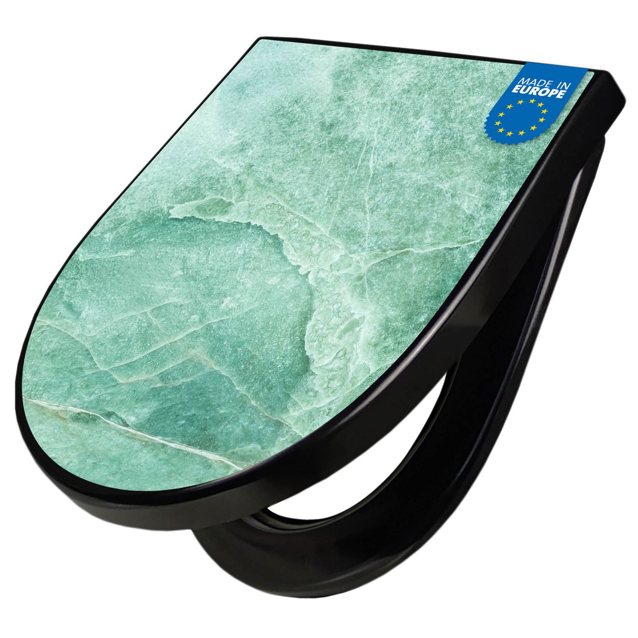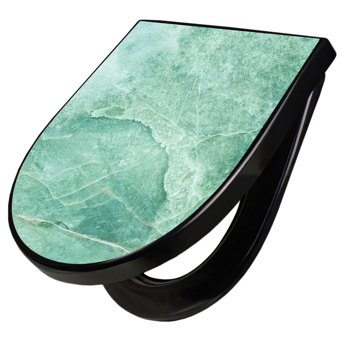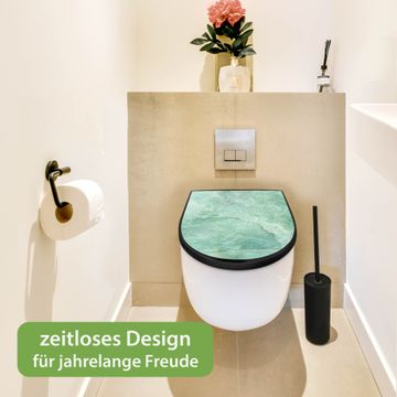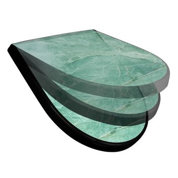 WC Sitz D-Form Schwarz mit Absenkautomatik Motiv Grüner Marmor 2
