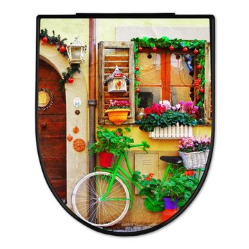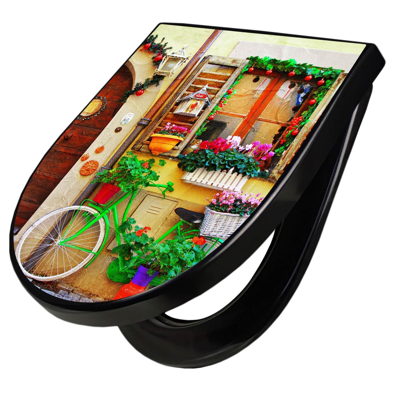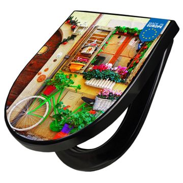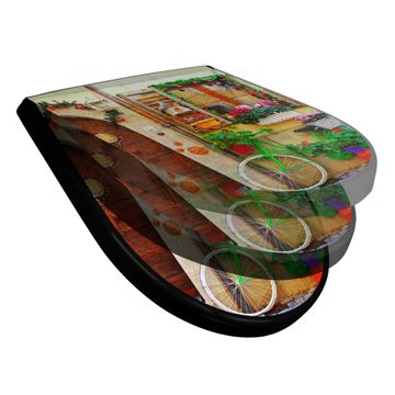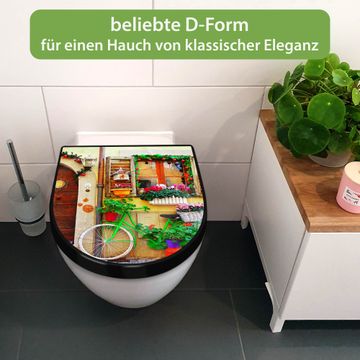 WC Sitz D-Form Schwarz mit Absenkautomatik Motiv Grünes Fahrrad