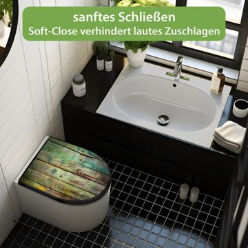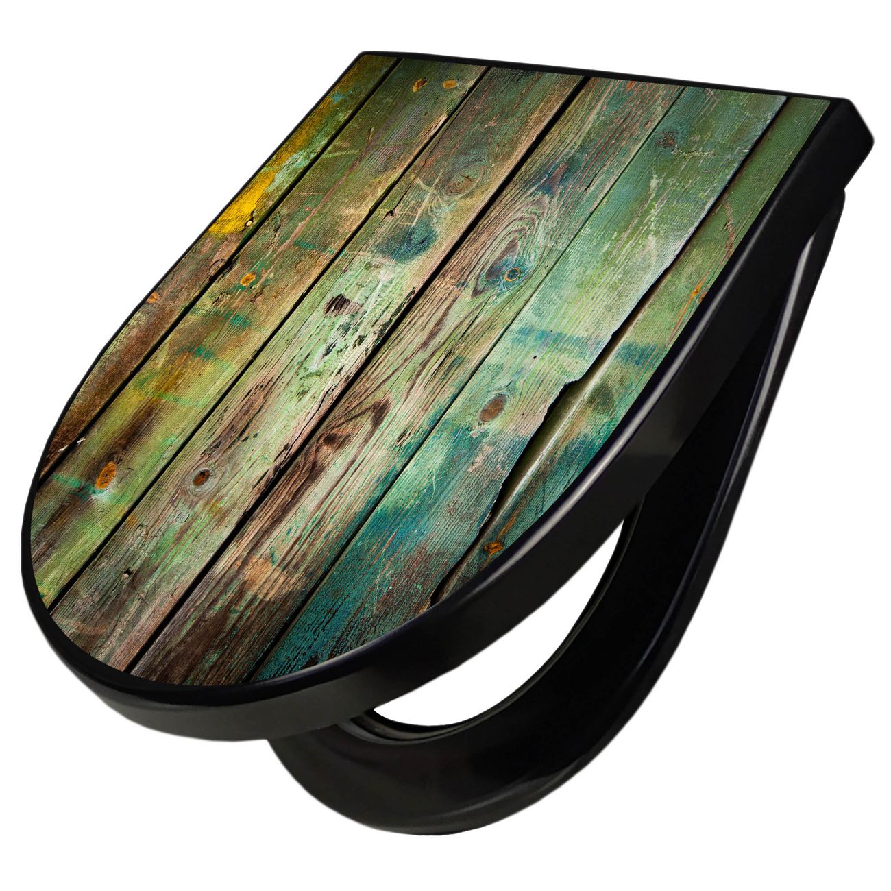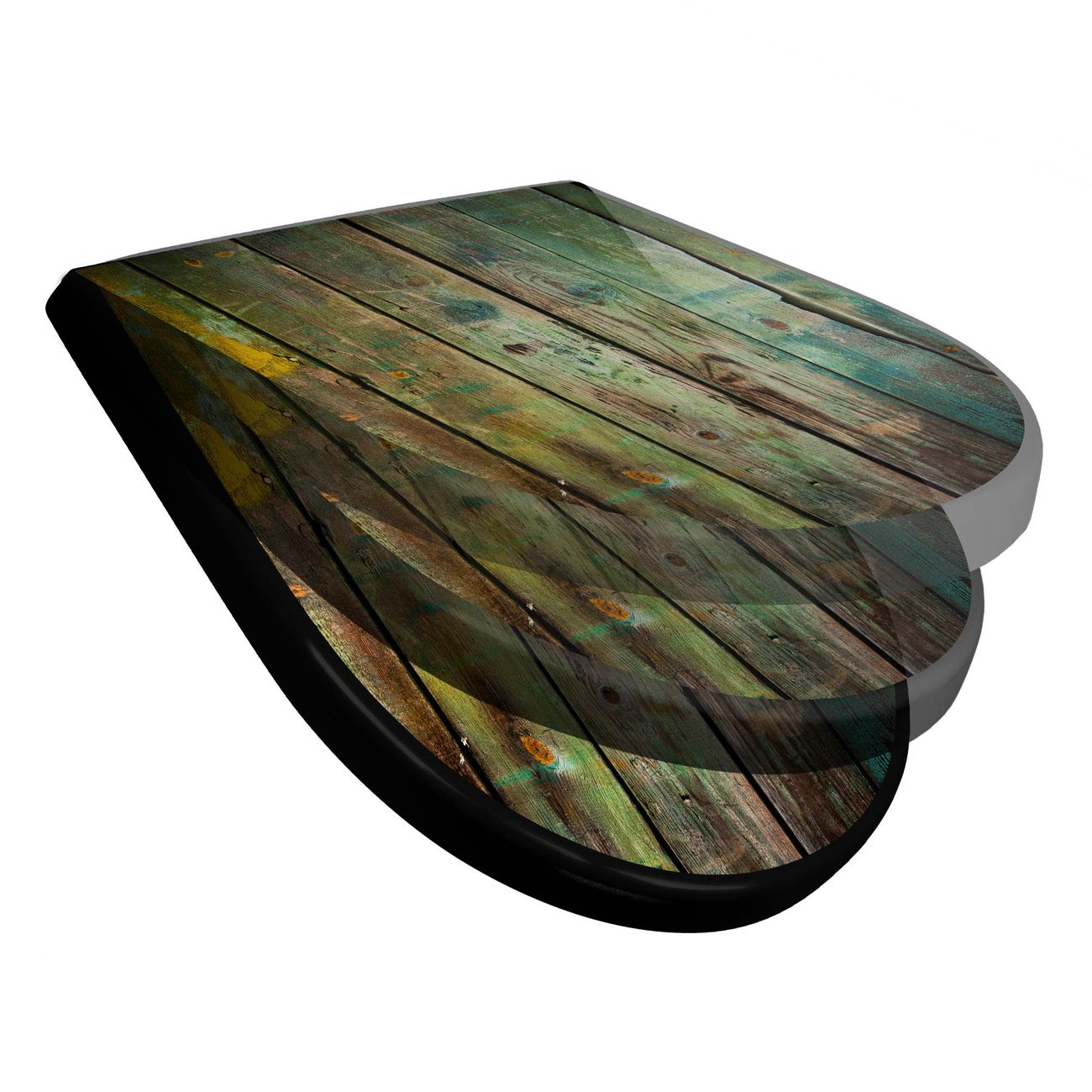 WC Sitz D-Form Schwarz mit Absenkautomatik Motiv Grünes Holz