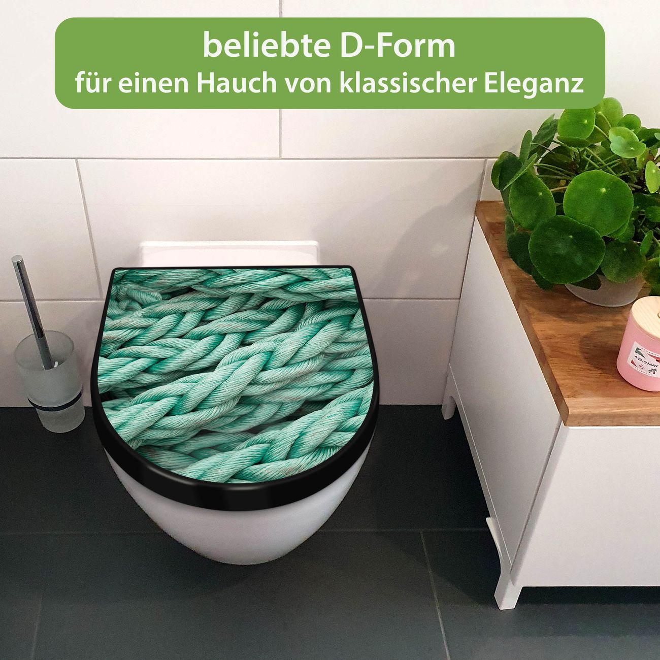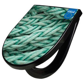 WC Sitz D-Form Schwarz mit Absenkautomatik Motiv Grünes Tau