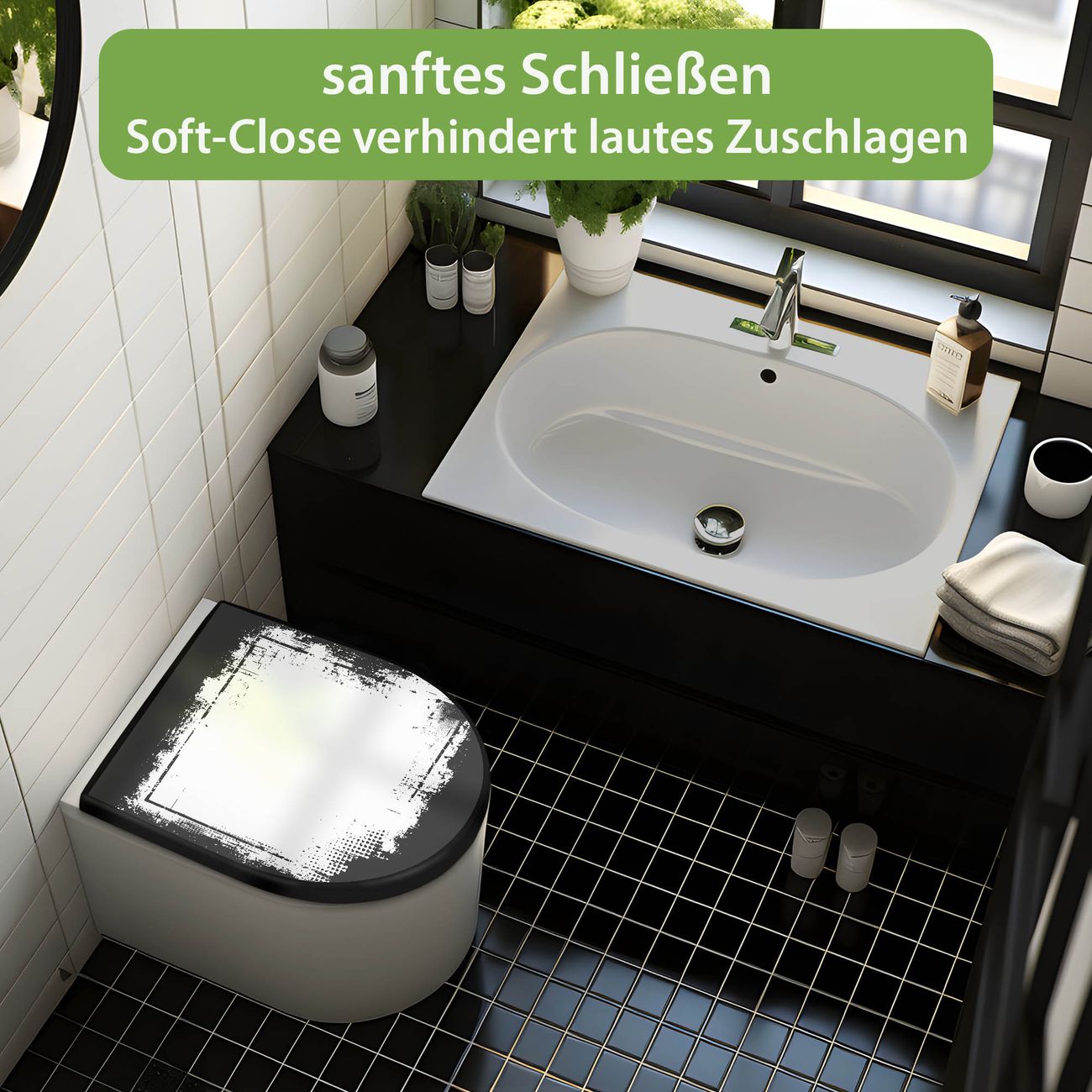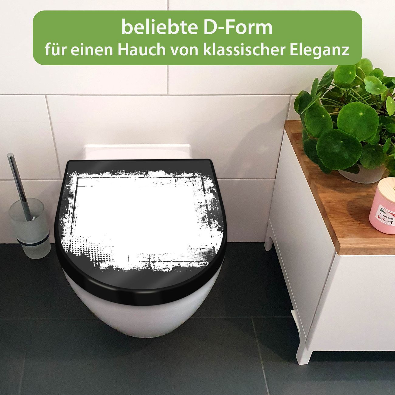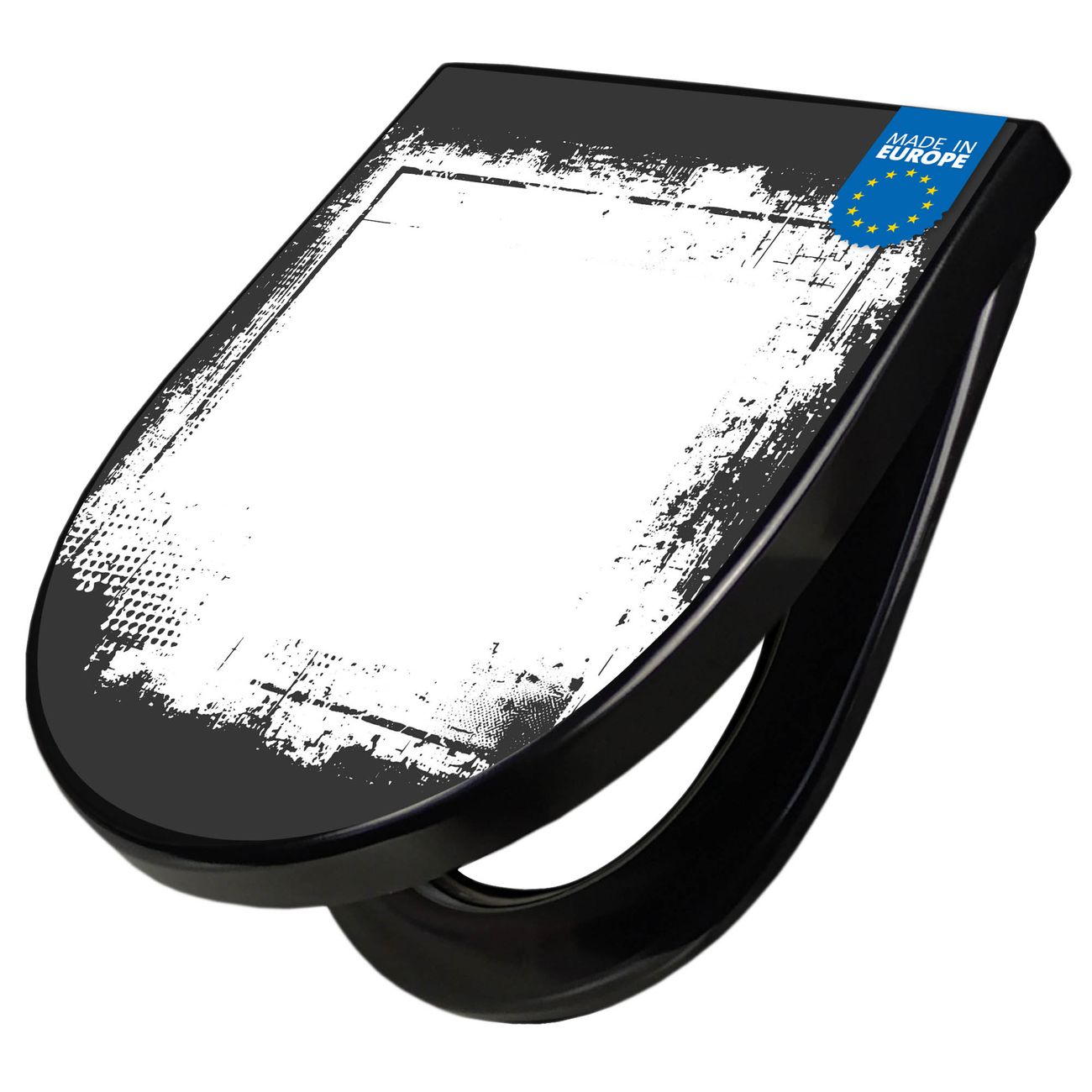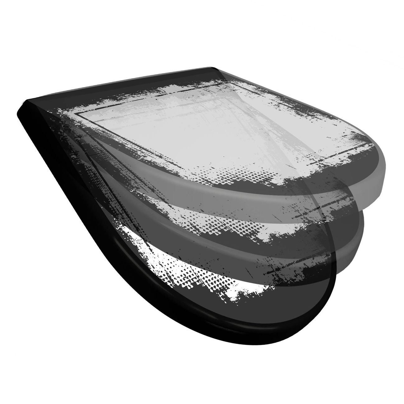 WC Sitz D-Form Schwarz mit Absenkautomatik Motiv Grunge-Rahmen