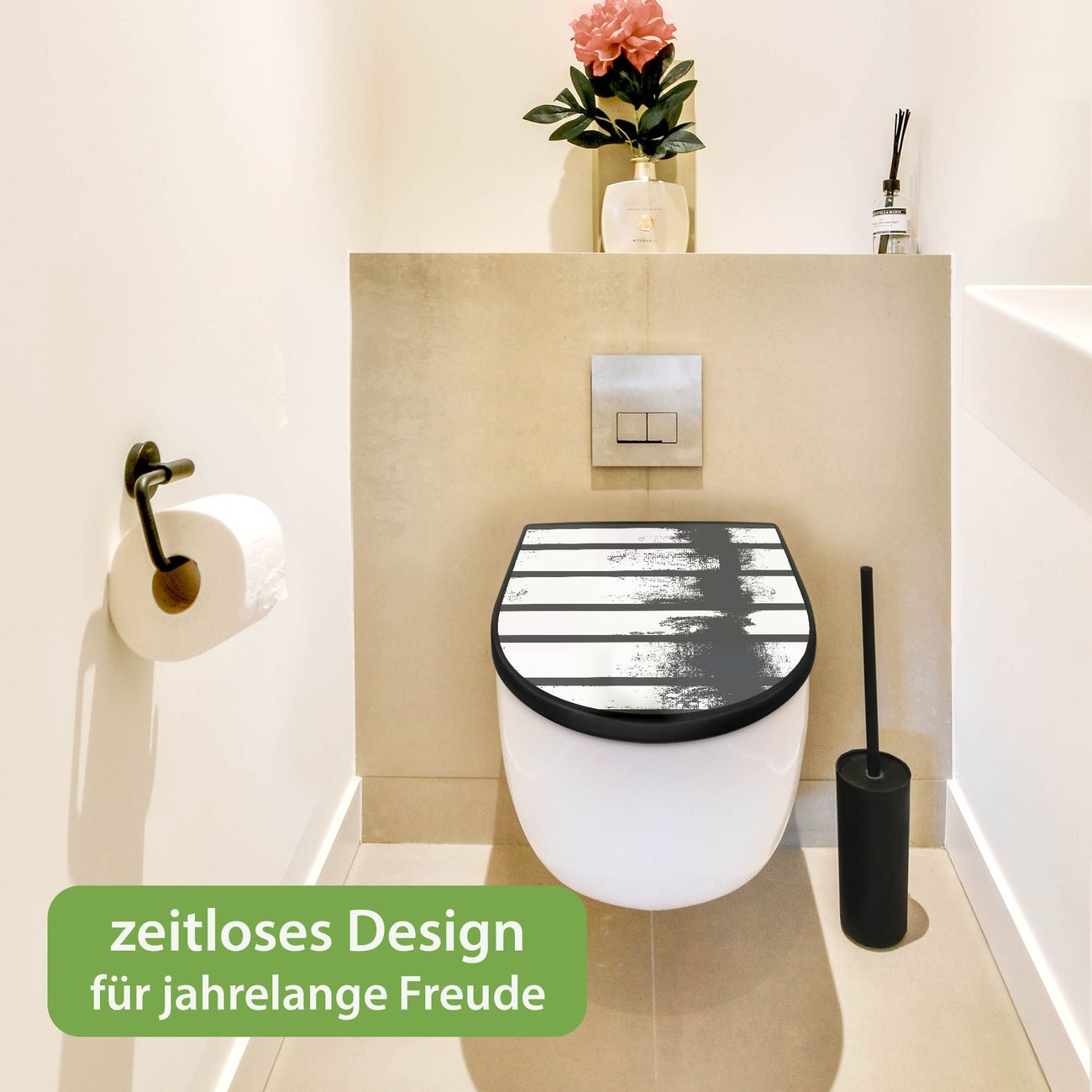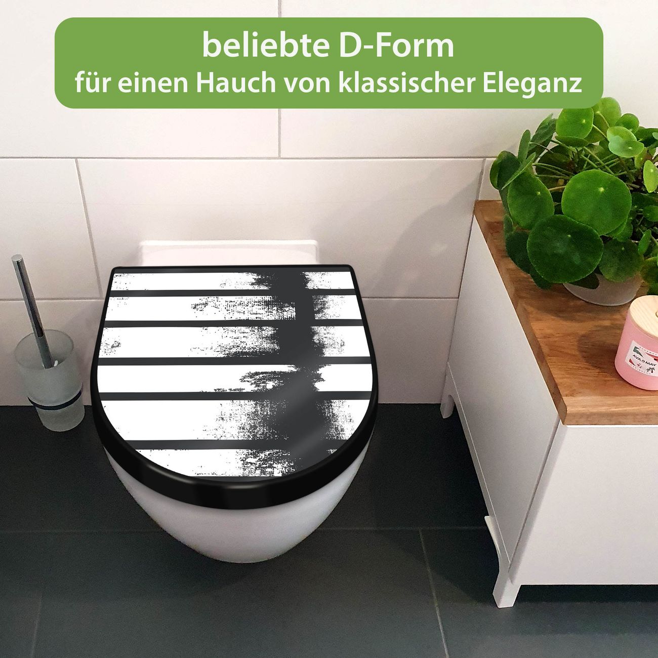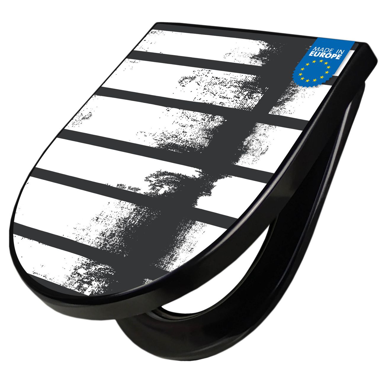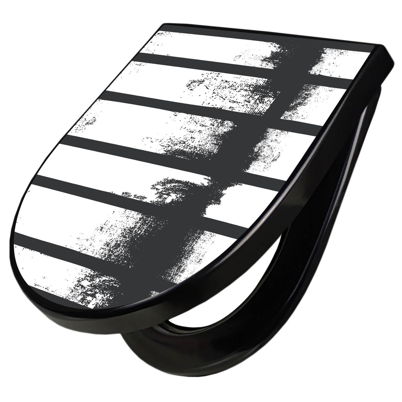 WC Sitz D-Form Schwarz mit Absenkautomatik Motiv Grunge Streifen