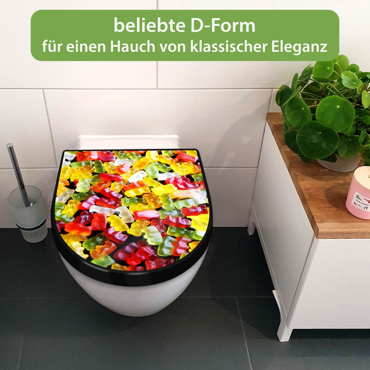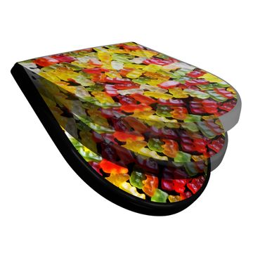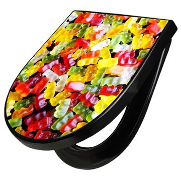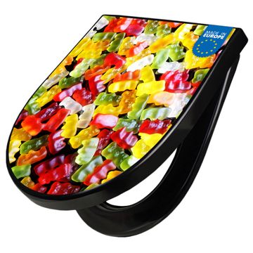 WC Sitz D-Form Schwarz mit Absenkautomatik Motiv Gummibaerchen