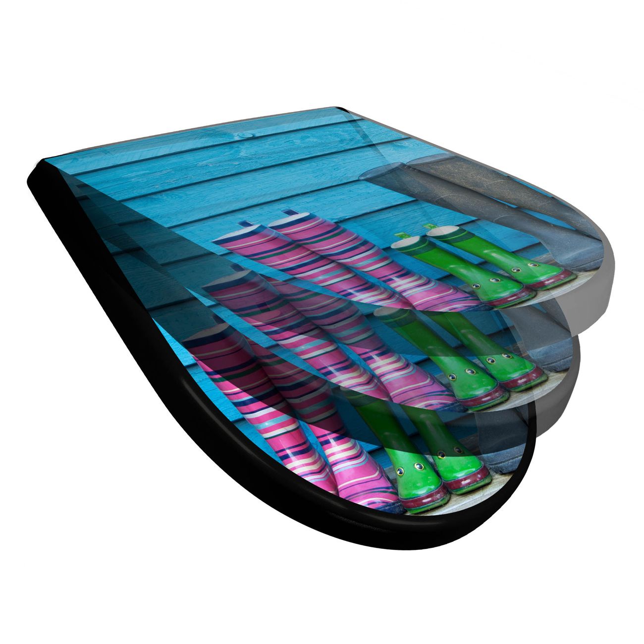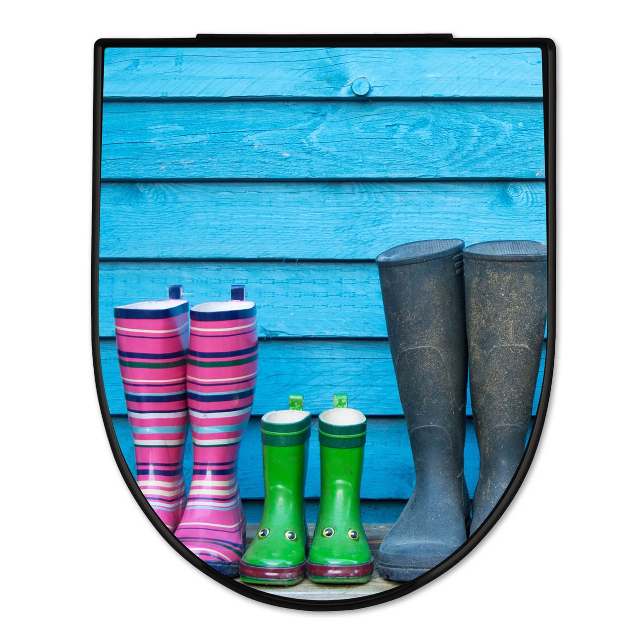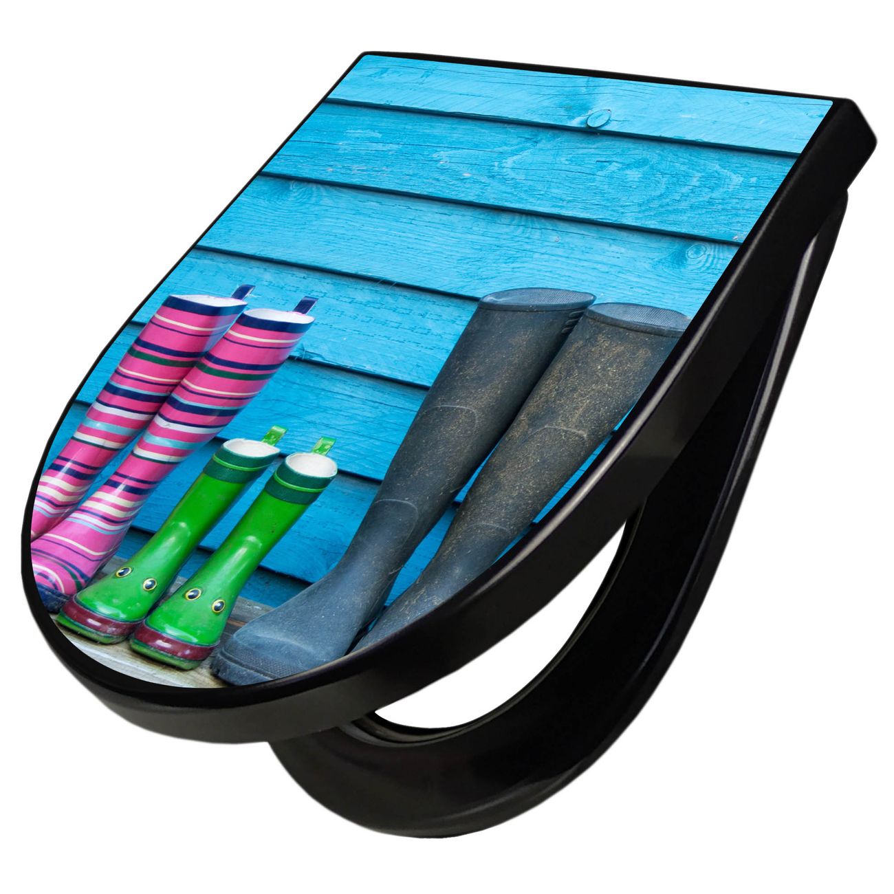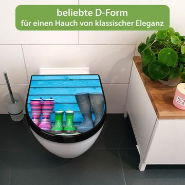 WC Sitz D-Form Schwarz mit Absenkautomatik Motiv Gummistiefel