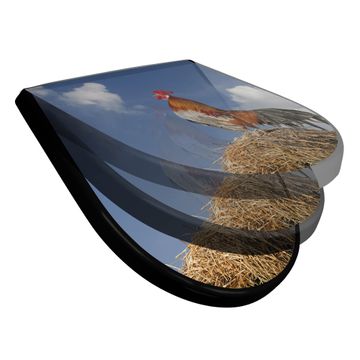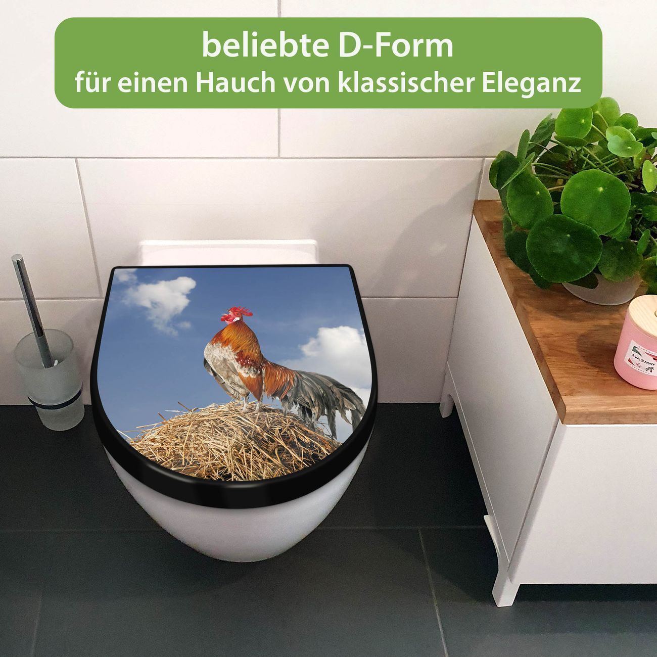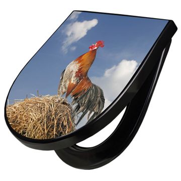 WC Sitz D-Form Schwarz mit Absenkautomatik Motiv Hahn