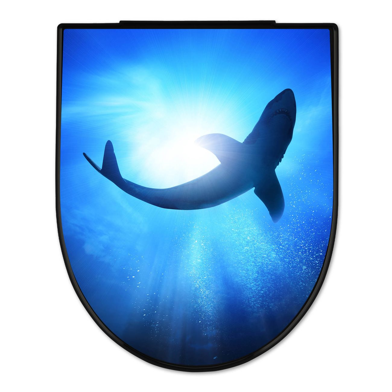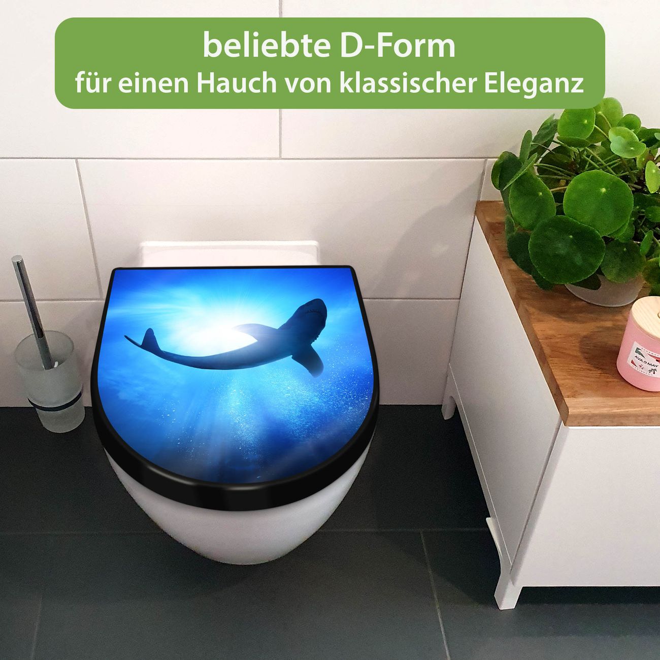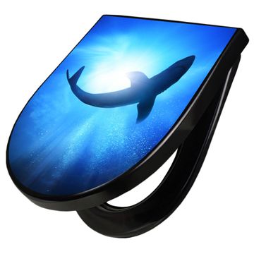 WC Sitz D-Form Schwarz mit Absenkautomatik Motiv Hai