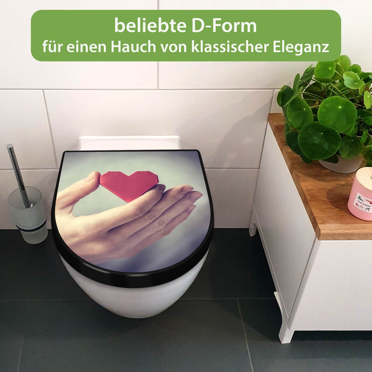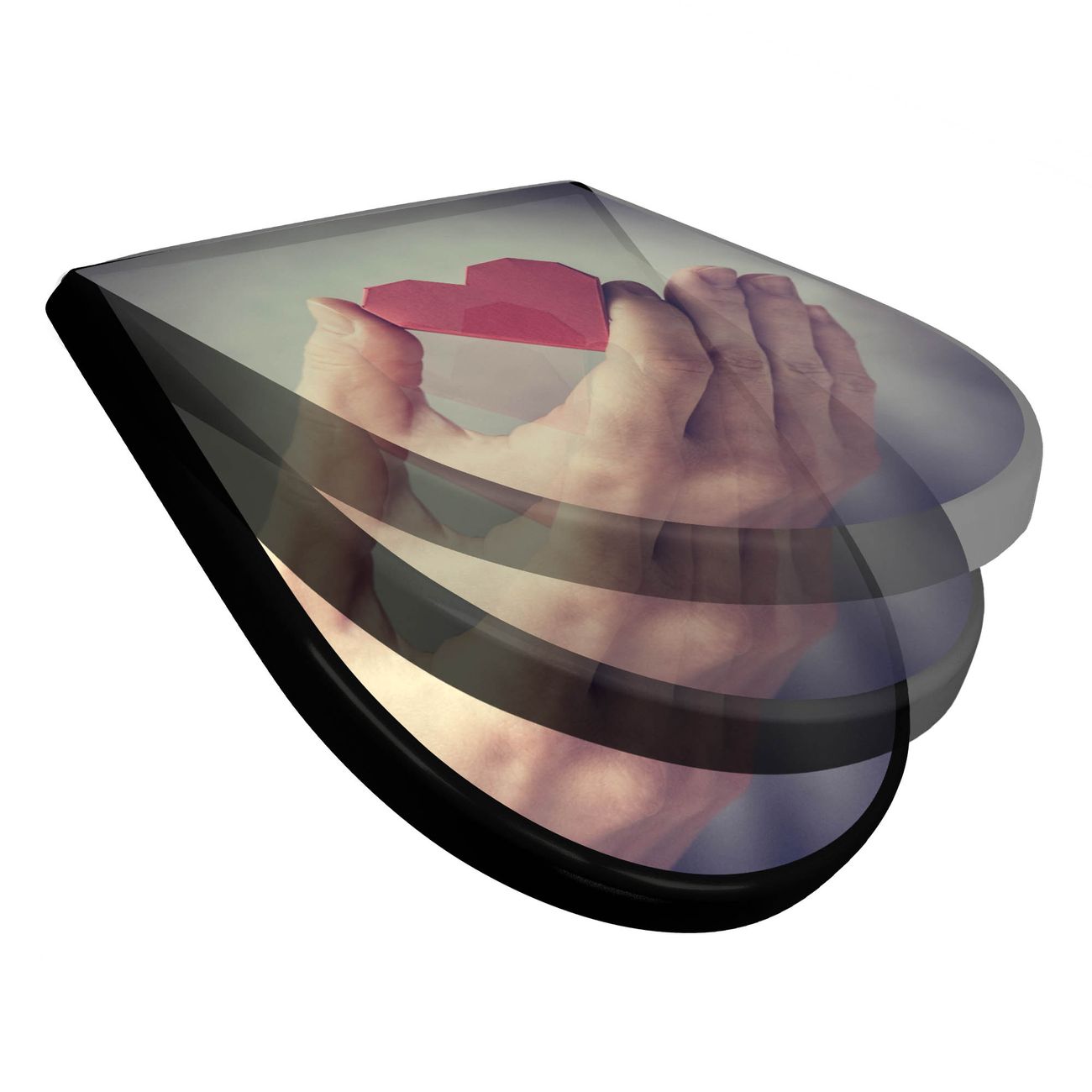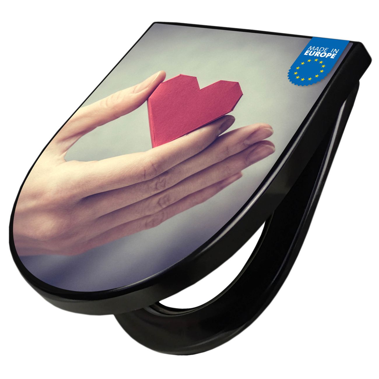 WC Sitz D-Form Schwarz mit Absenkautomatik Motiv Hand Aufs Herz