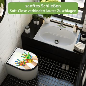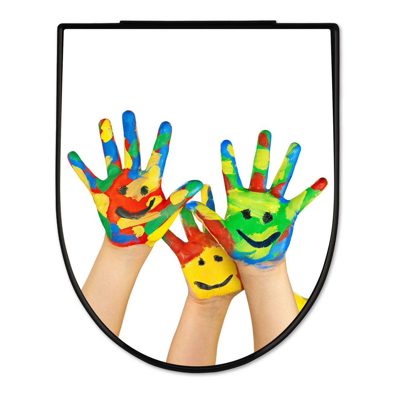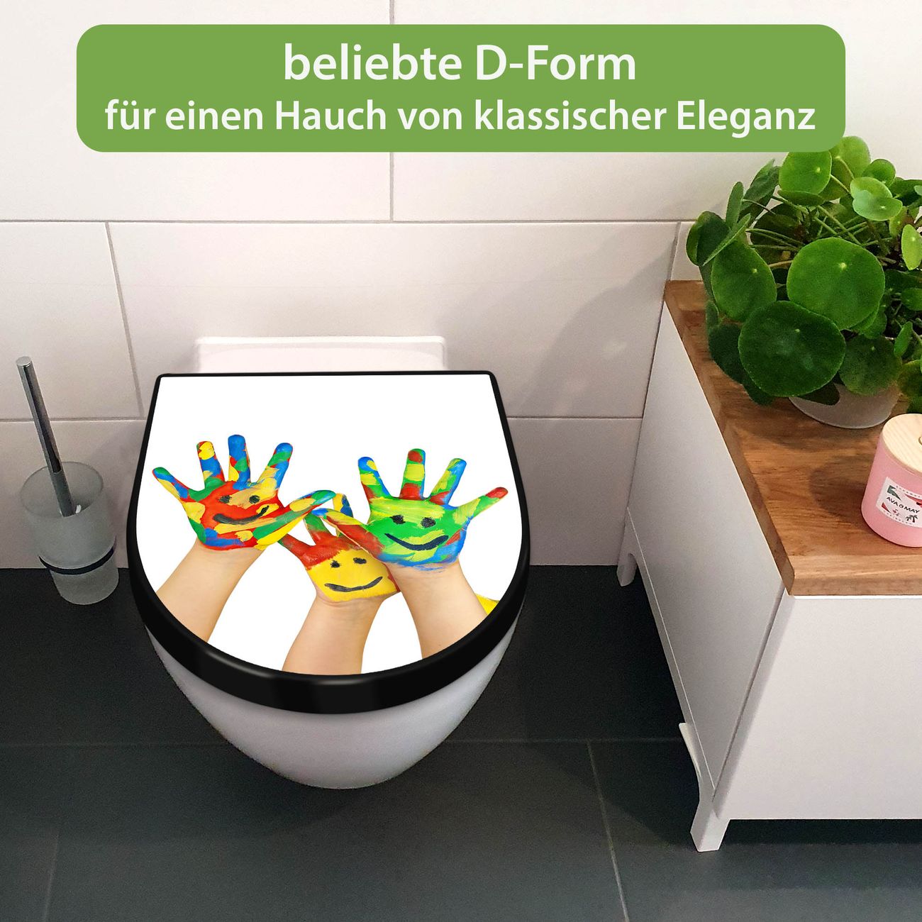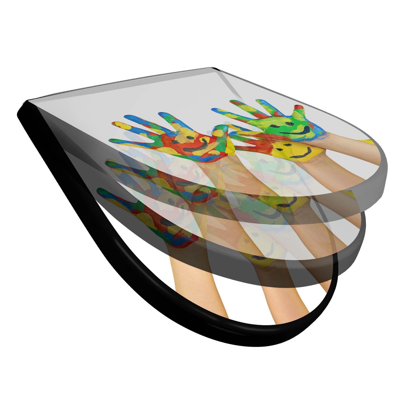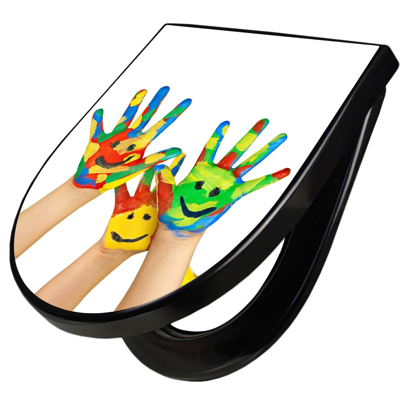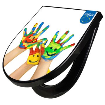WC Sitz D-Form Schwarz mit Absenkautomatik Motiv Happy Hands
