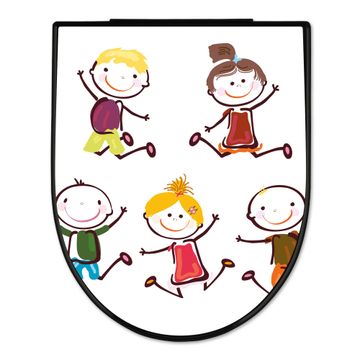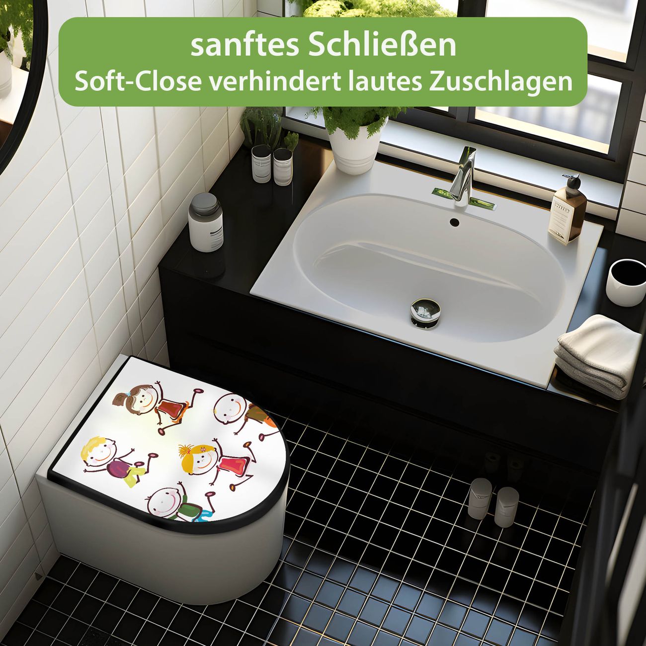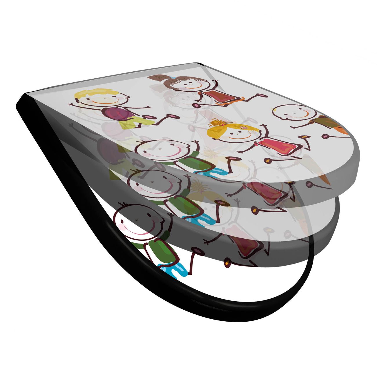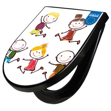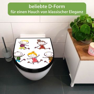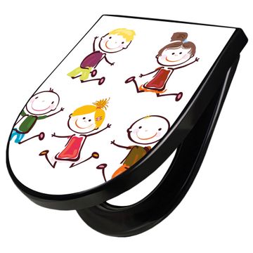 WC Sitz D-Form Schwarz mit Absenkautomatik Motiv Happy Kids
