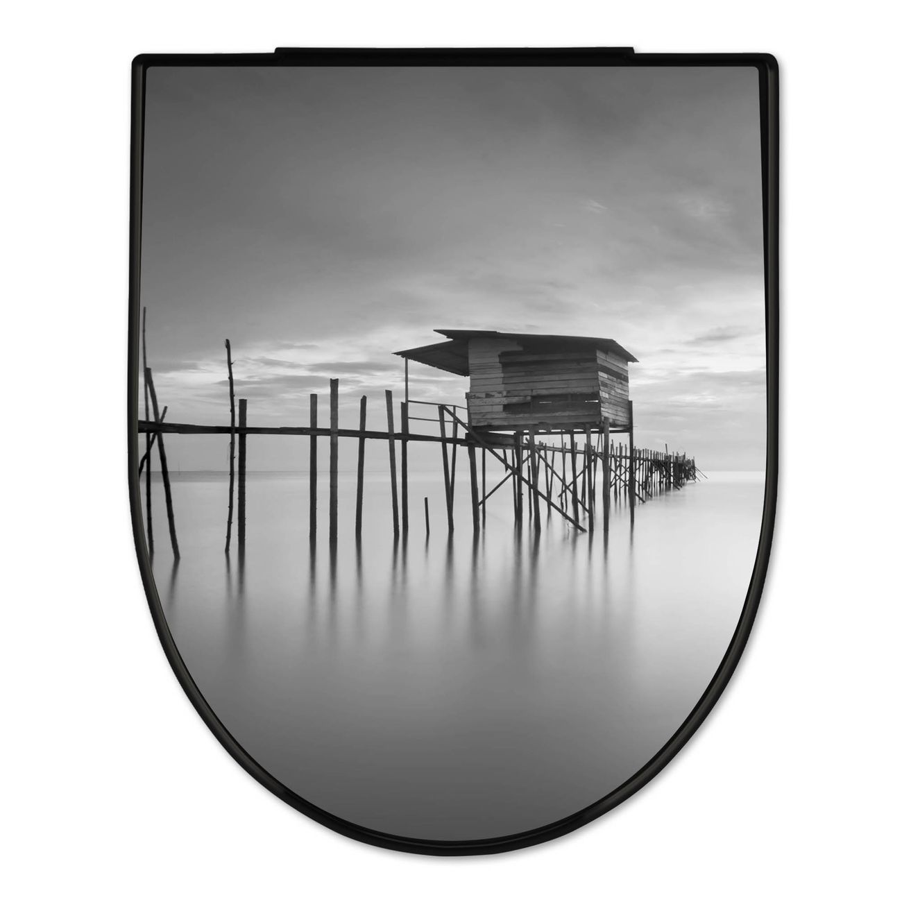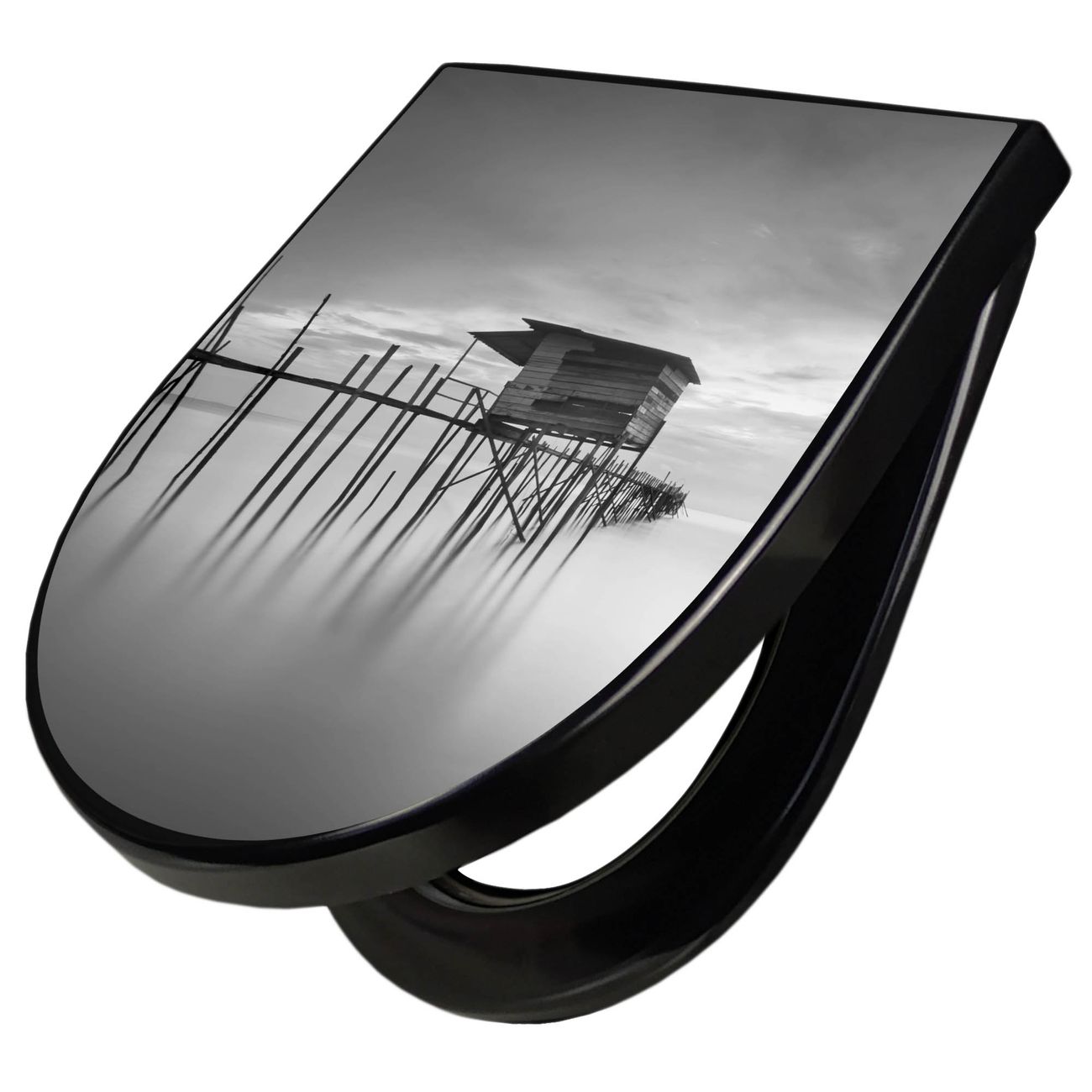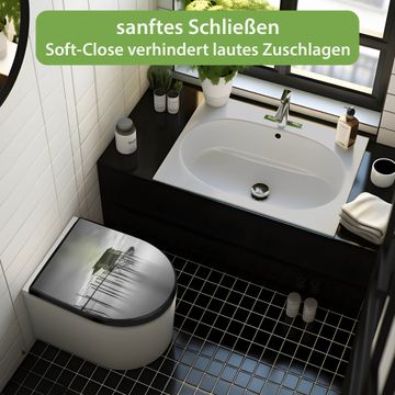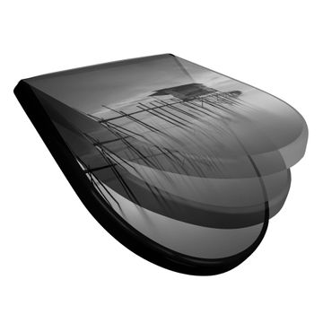 WC Sitz D-Form Schwarz mit Absenkautomatik Motiv Haus am See