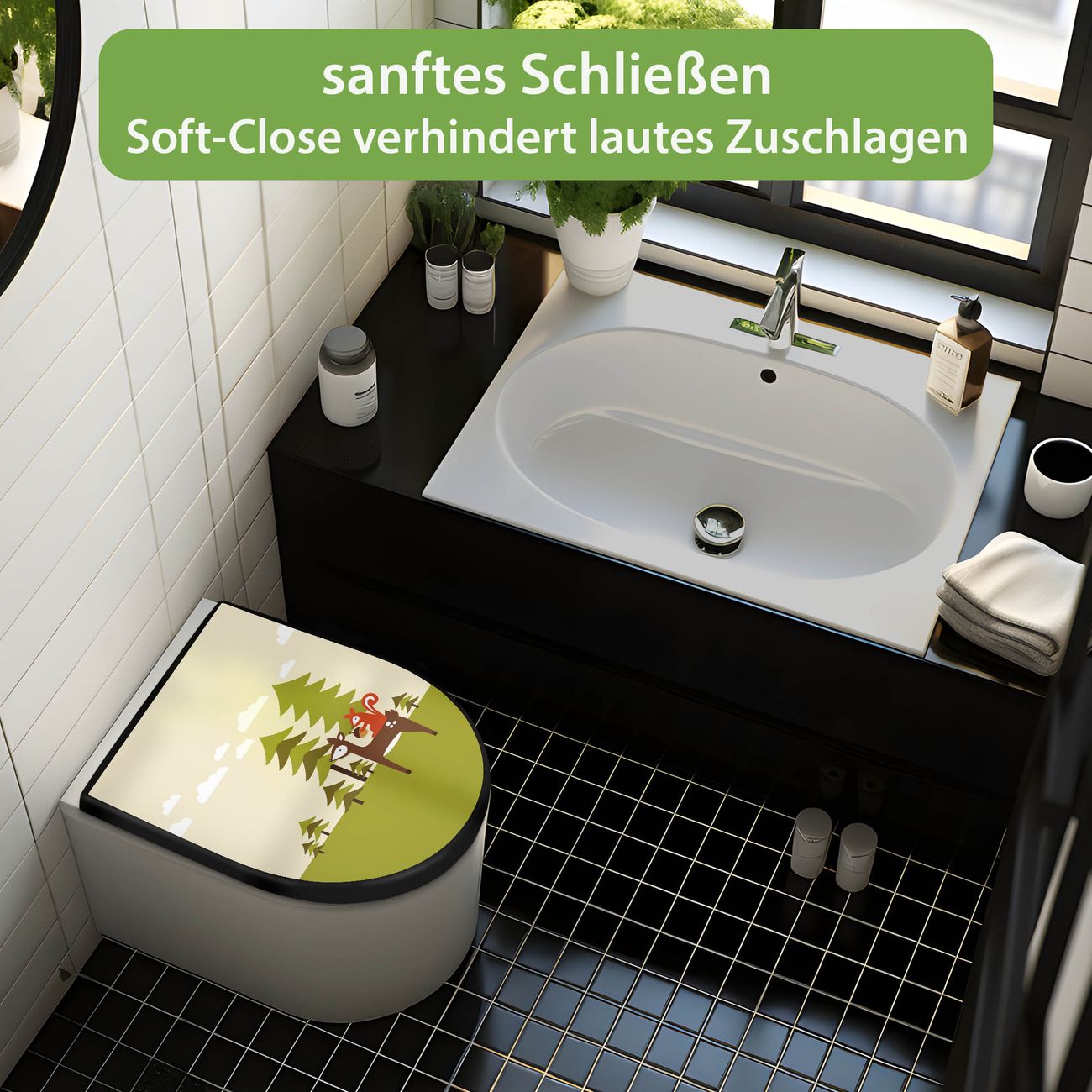 WC Sitz D-Form Schwarz mit Absenkautomatik Motiv Heimweg