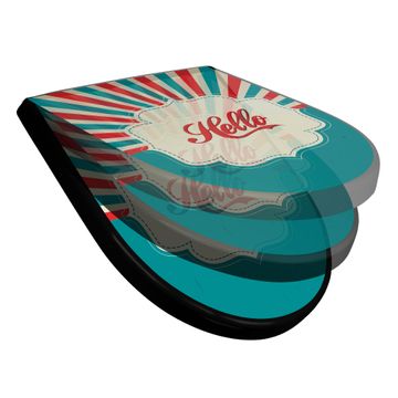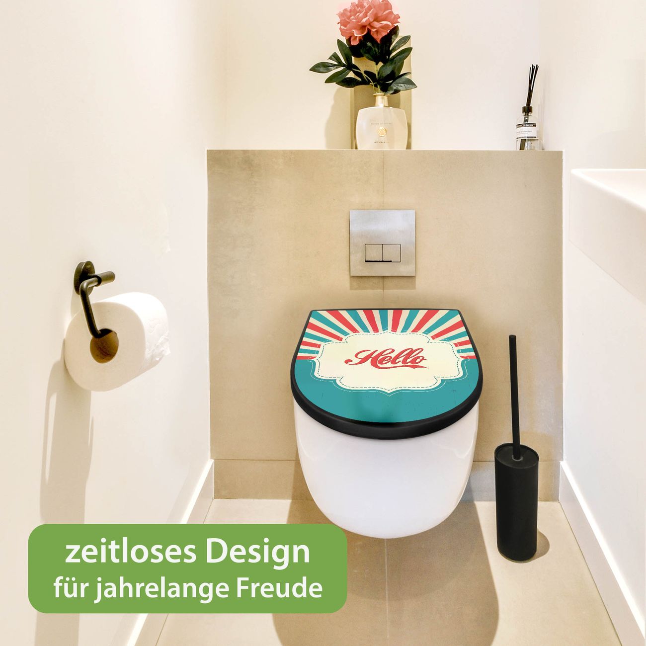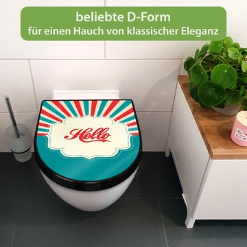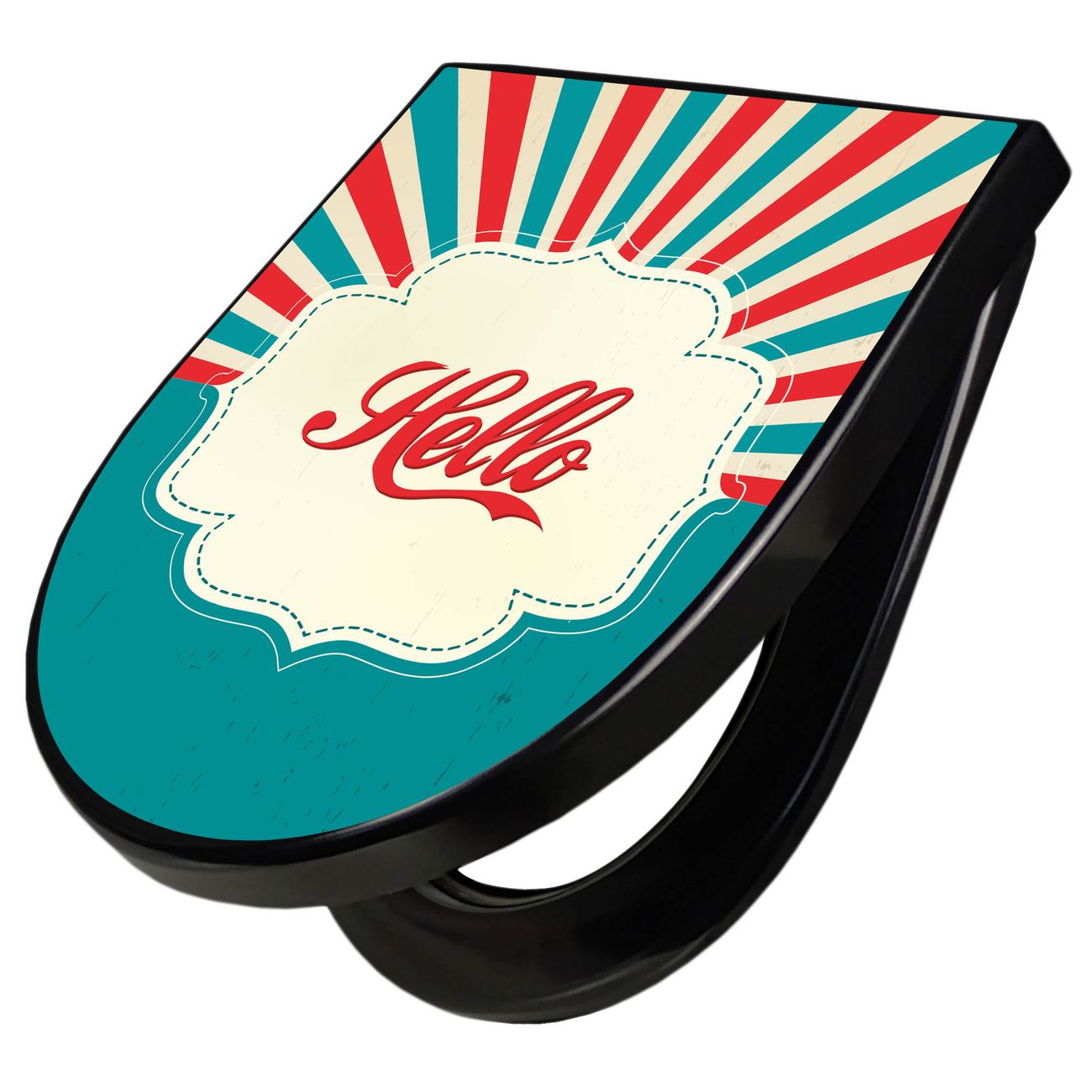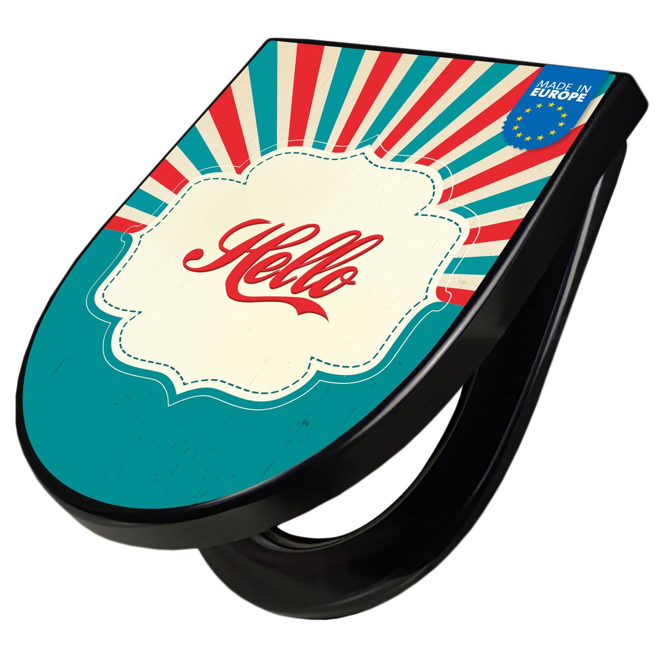 WC Sitz D-Form Schwarz mit Absenkautomatik Motiv Hello