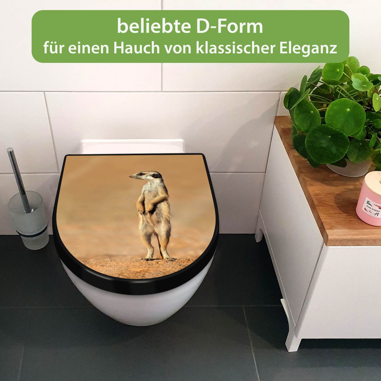 Der Toilettensitz mit Softclose Absenkautomatik besteht aus hochwertigem Duroplast. Ein Material, dass robust, angenehm in der Haptik und hygienisch ist. Die Montage erfolgt nach Bedarf von oben oder unten und ist kinderleicht.