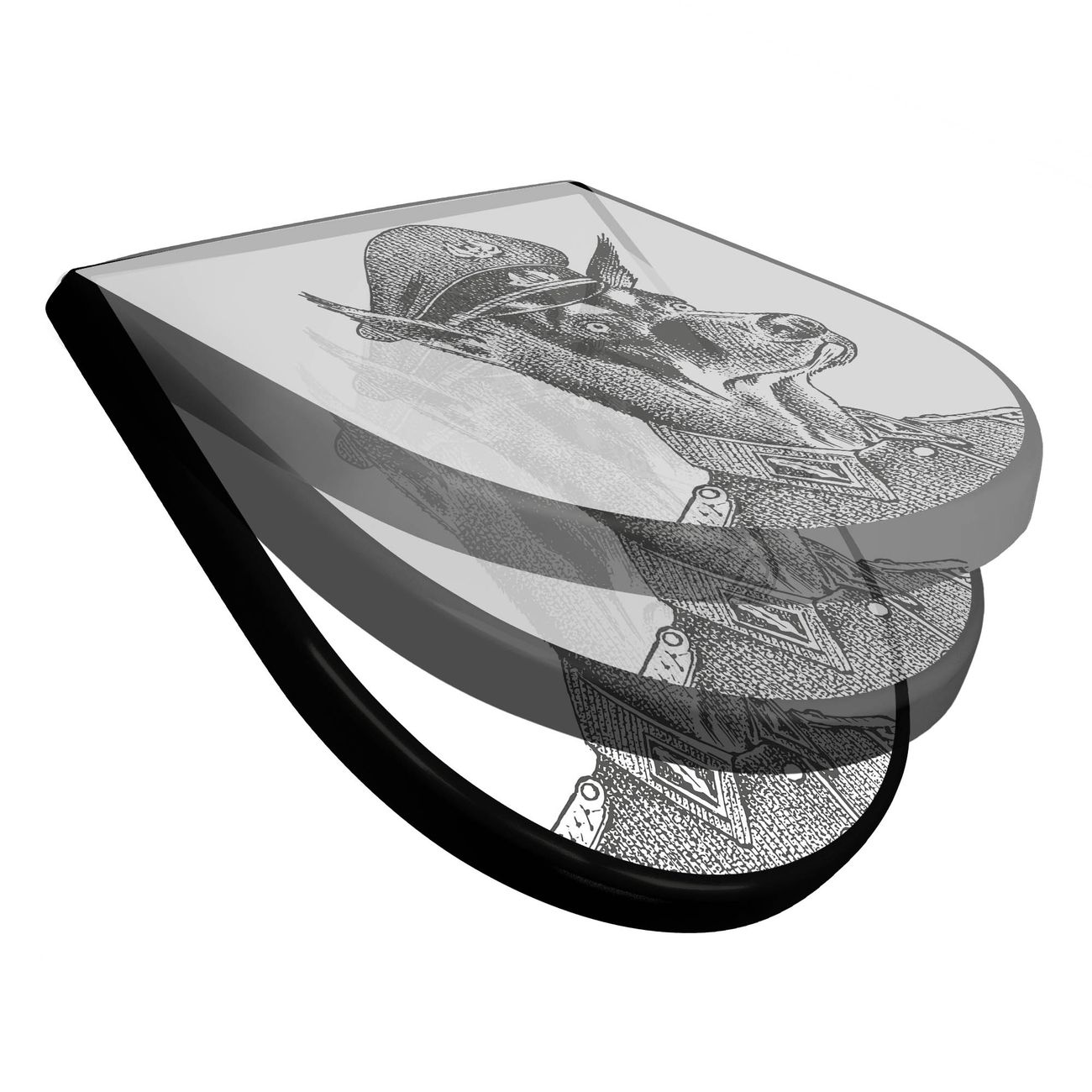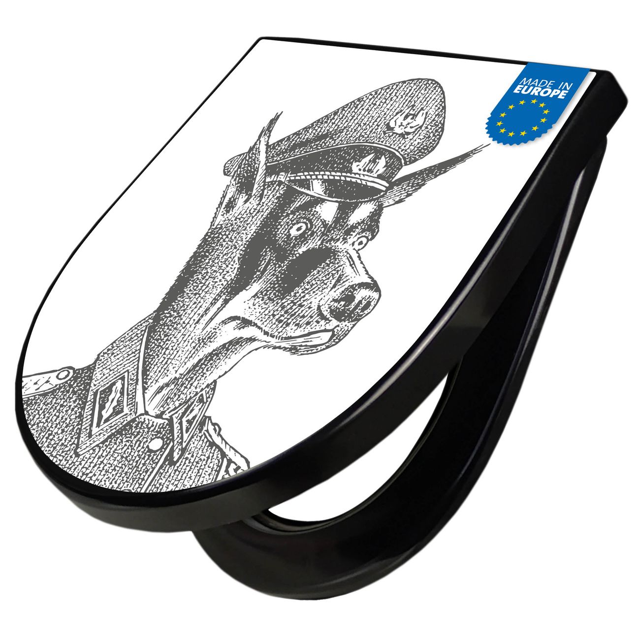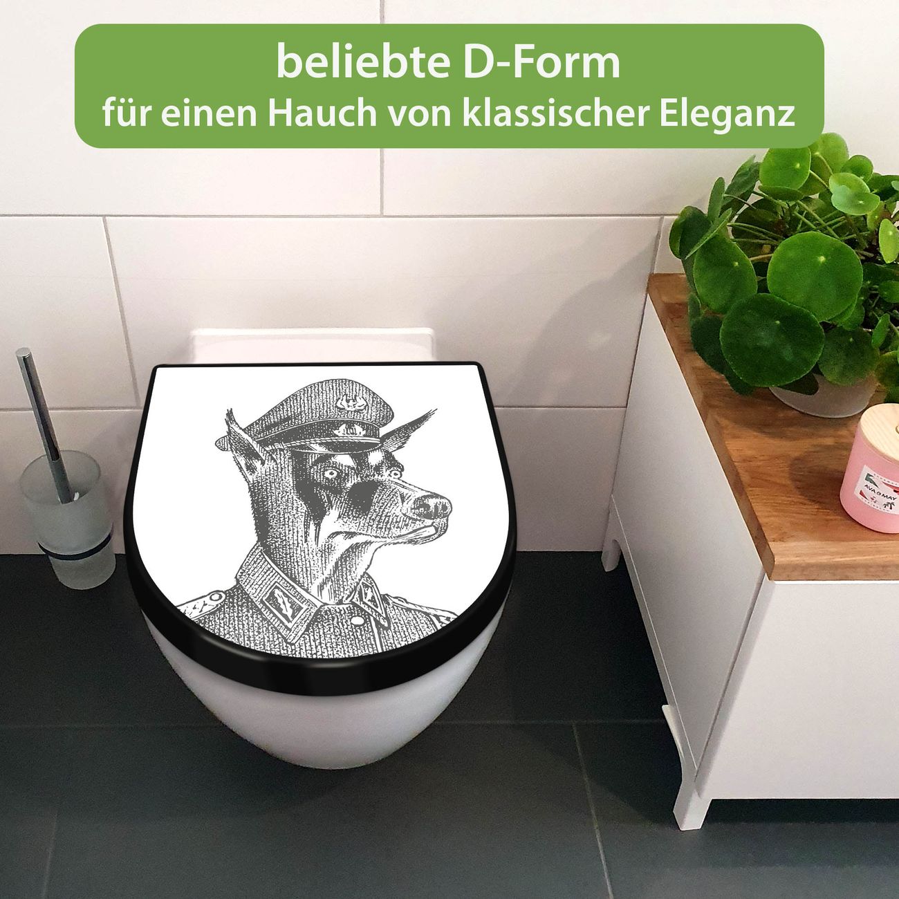 WC Sitz D-Form Schwarz mit Absenkautomatik Motiv Herr Hund 2