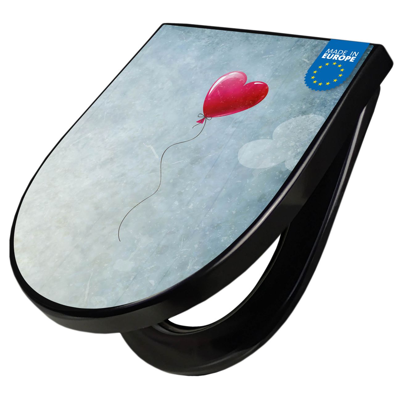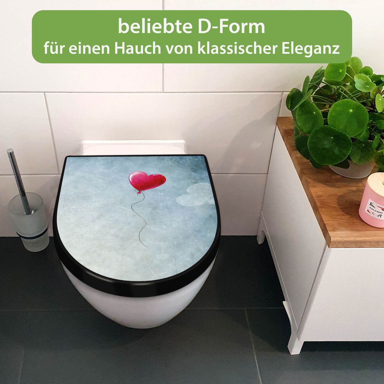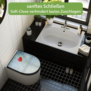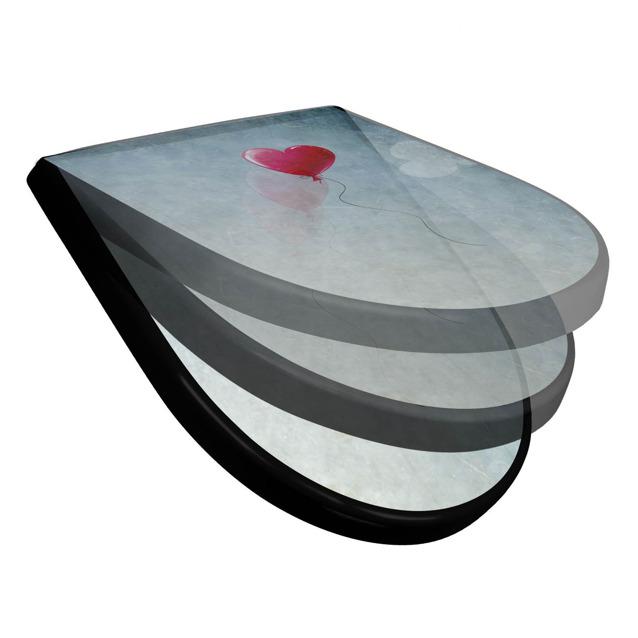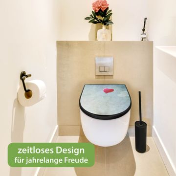 WC Sitz D-Form Schwarz mit Absenkautomatik Motiv Herzballon