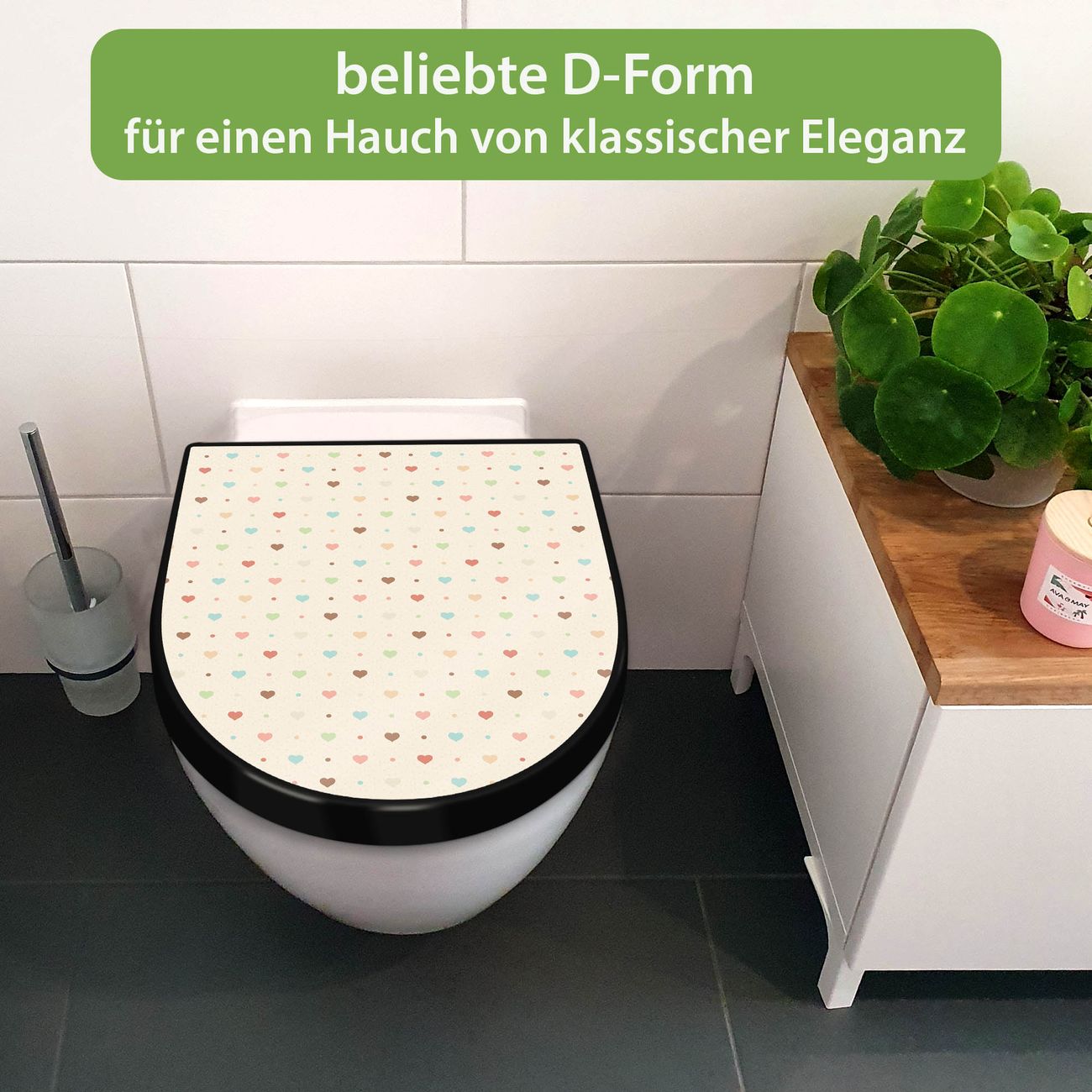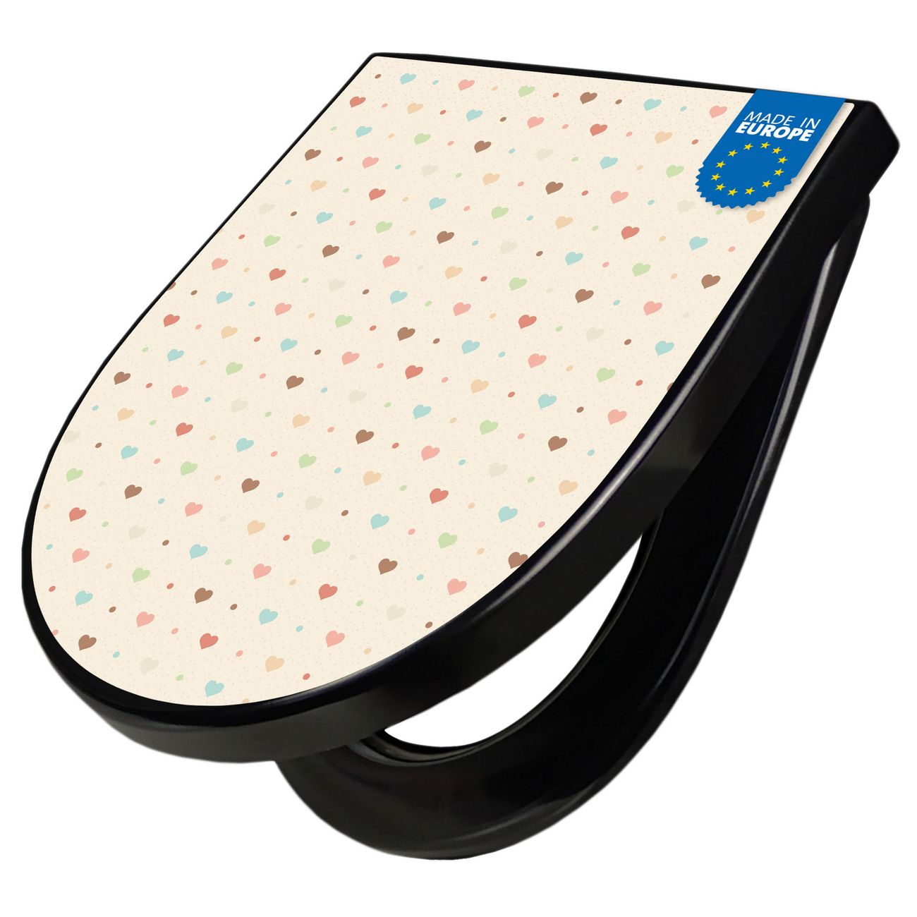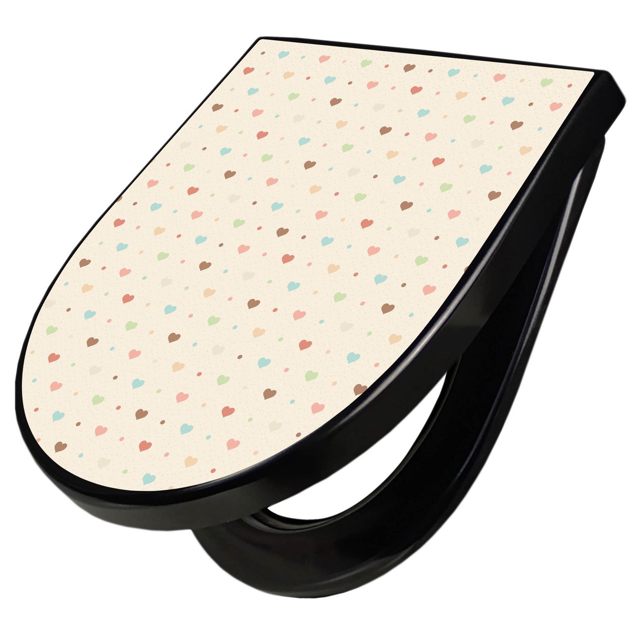 WC Sitz D-Form Schwarz mit Absenkautomatik Motiv Herzen bunt